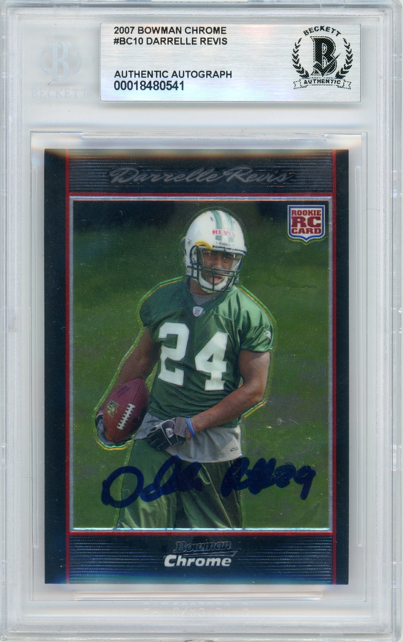 2007 Bowman Chrome #BC10 Darrelle Revis RC BGS Autograph sports trading card, hand signed by Darelle Revis and graded by Beckett Grading Services. (BGS) We appreciate your interest in our items, and we hope that we can make all transactions professional and satisfying.