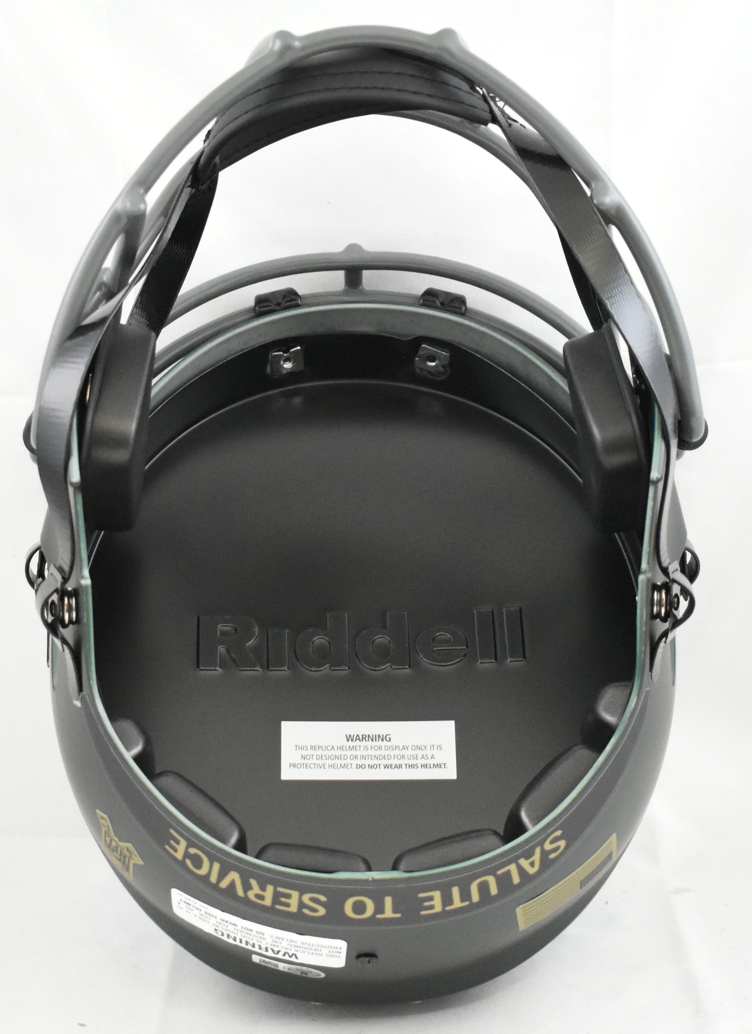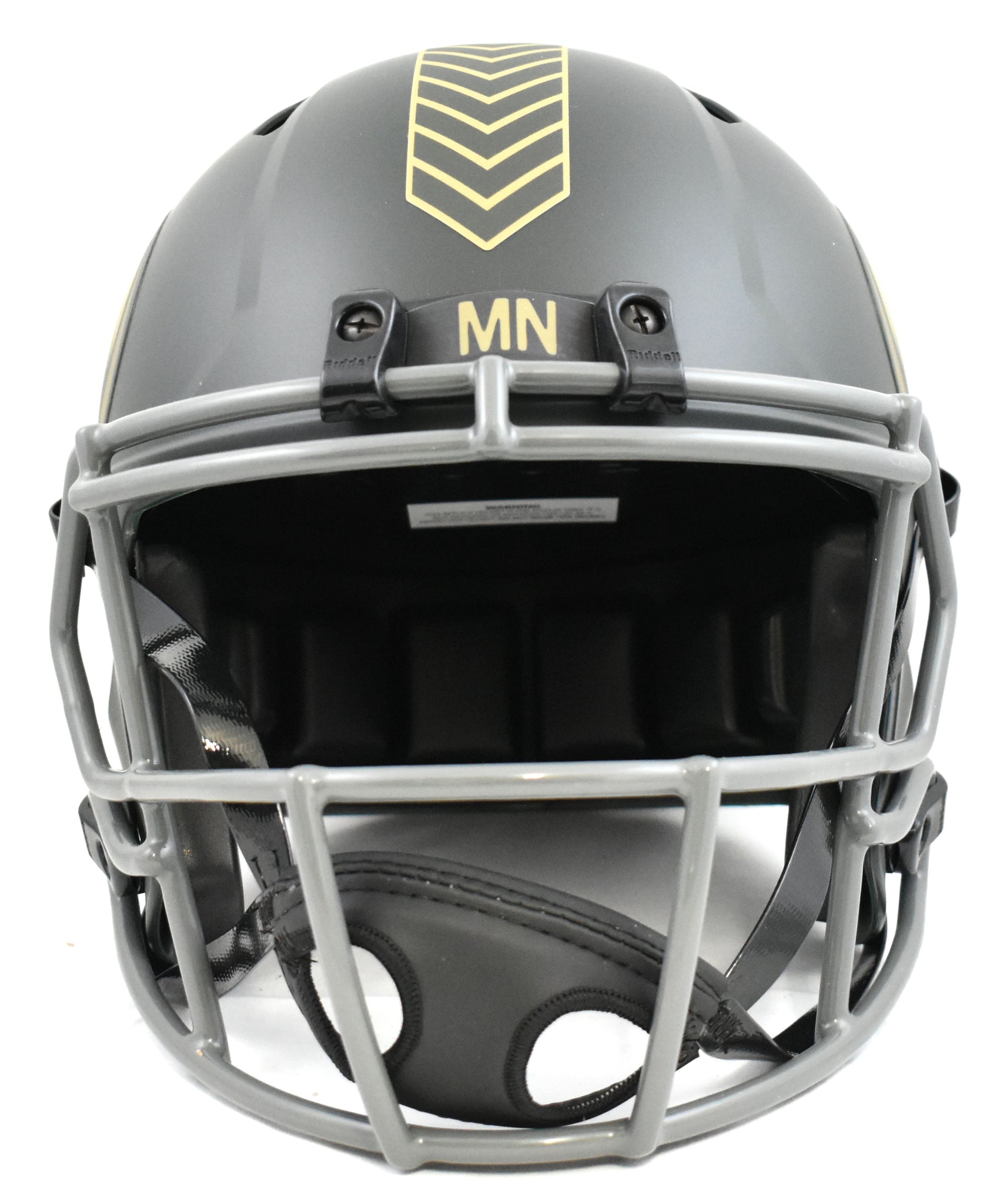 This is an Adrian Peterson of the Minnesota Vikings autographed Riddell football full size Salute to Service 2025 Speed Replica helmet. This item has a Beckett Witnessed Authentication, which comes with a numbered hologram and a QR code for verification. You can view this item on the Beckett Authentication website, and it shows when and where the item was signed. It was signed either at a public autograph appearance or a private signing. This is a stock photo of the item. Although you may not receive this exact item, the item you receive is virtually identical, brand new, and in great shape. *Autograph location may vary*
