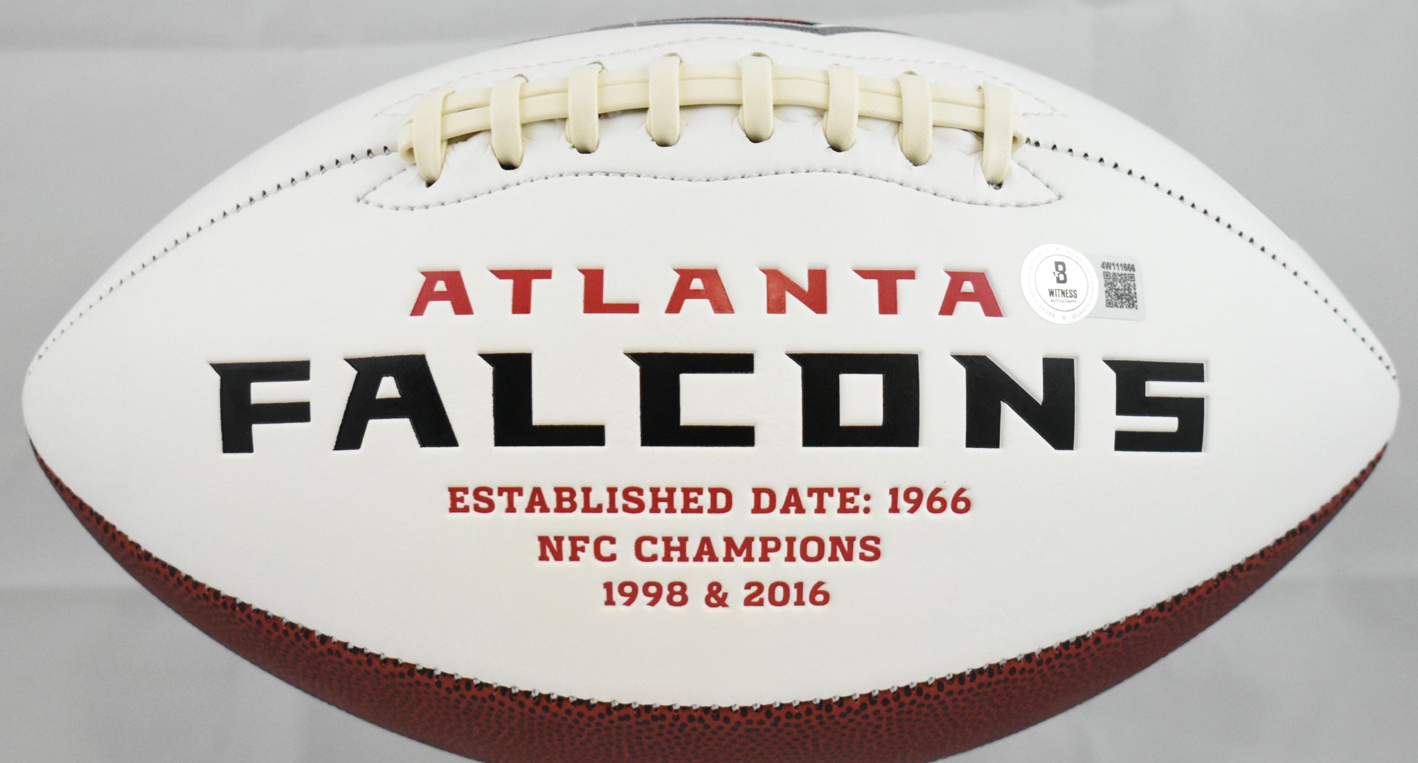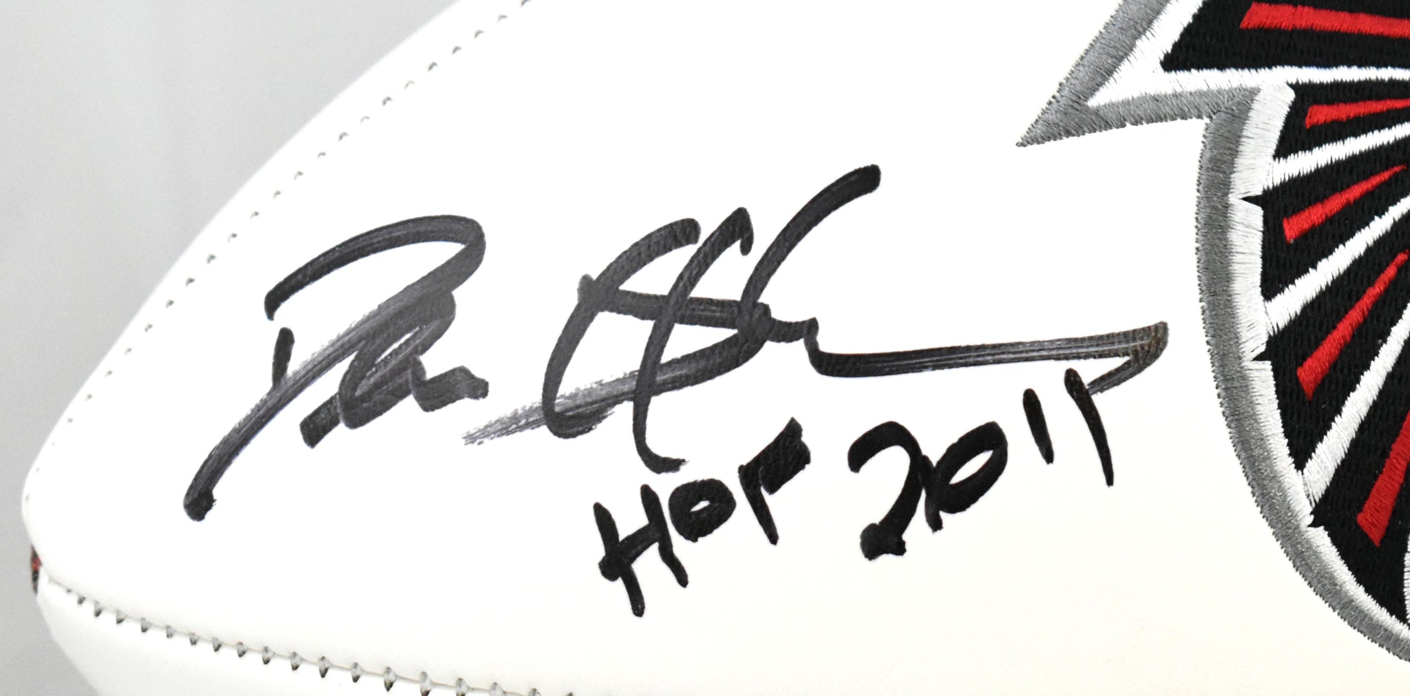 This is a hand autographed Football of Deion Sanders of the Atlanta Falcons. This is a Atlanta Falcons logo football. Inscribed HOF. This item has a Beckett Witnessed Authentication, which comes with a numbered hologram and a QR code for verification. You can view this item on the Beckett website; it shows when and where the item was signed. It was signed either at a public autograph appearance or a private signing. This is a stock photo of the item. Although you may not receive this exact item, the item you receive is virtually identical and brand new in great shape.