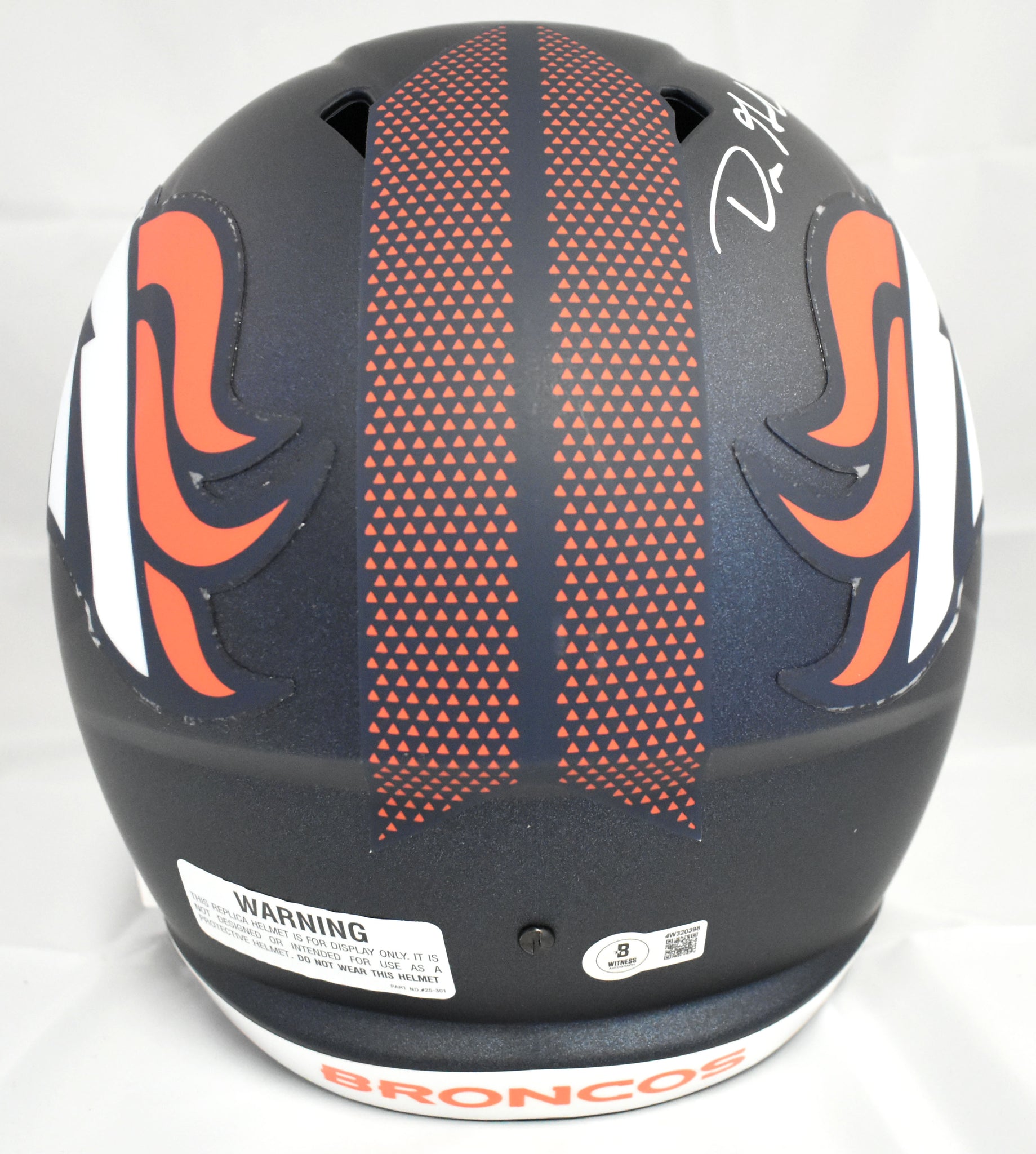 This is a Dre Greenlaw of the Denver Broncos Autographed Riddell football full size Speed Replica helmet. This item has a Beckett Witnessed Authentication, which comes with a numbered hologram and a QR code for verification. You can view this item on the Beckett Authentication website, and it shows when and where the item was signed. It was signed either at a public autograph appearance or a private signing. This is a stock photo of the item. Although you may not receive this exact item, the item you receive is virtually identical, brand new, and in great shape. *Autograph location may vary*