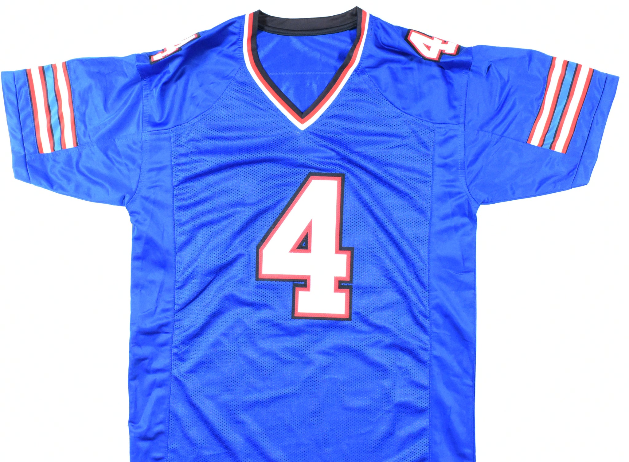 THIS IS NOT AN NFL JERSEY. THIS HAS NO TAGS, NO LOGOS, NO EMBLEMS. This is a hand autograph of James Cook of the Buffalo Bills on a Custom Made (non-name brand) Authentic Style Jersey with stitched letters and numbers. This item has a Beckett Witnessed Authentication, which comes with a Beckett numbered sticker hologram and a QR Code for verification. You can view this item on the Beckett Authentication website. It was signed either at a public autograph appearance or a private signing. This is a stock photo of the item. Although you may not receive this exact item, the item you receive is virtually identical and brand new in great shape. Jersey size is XL.