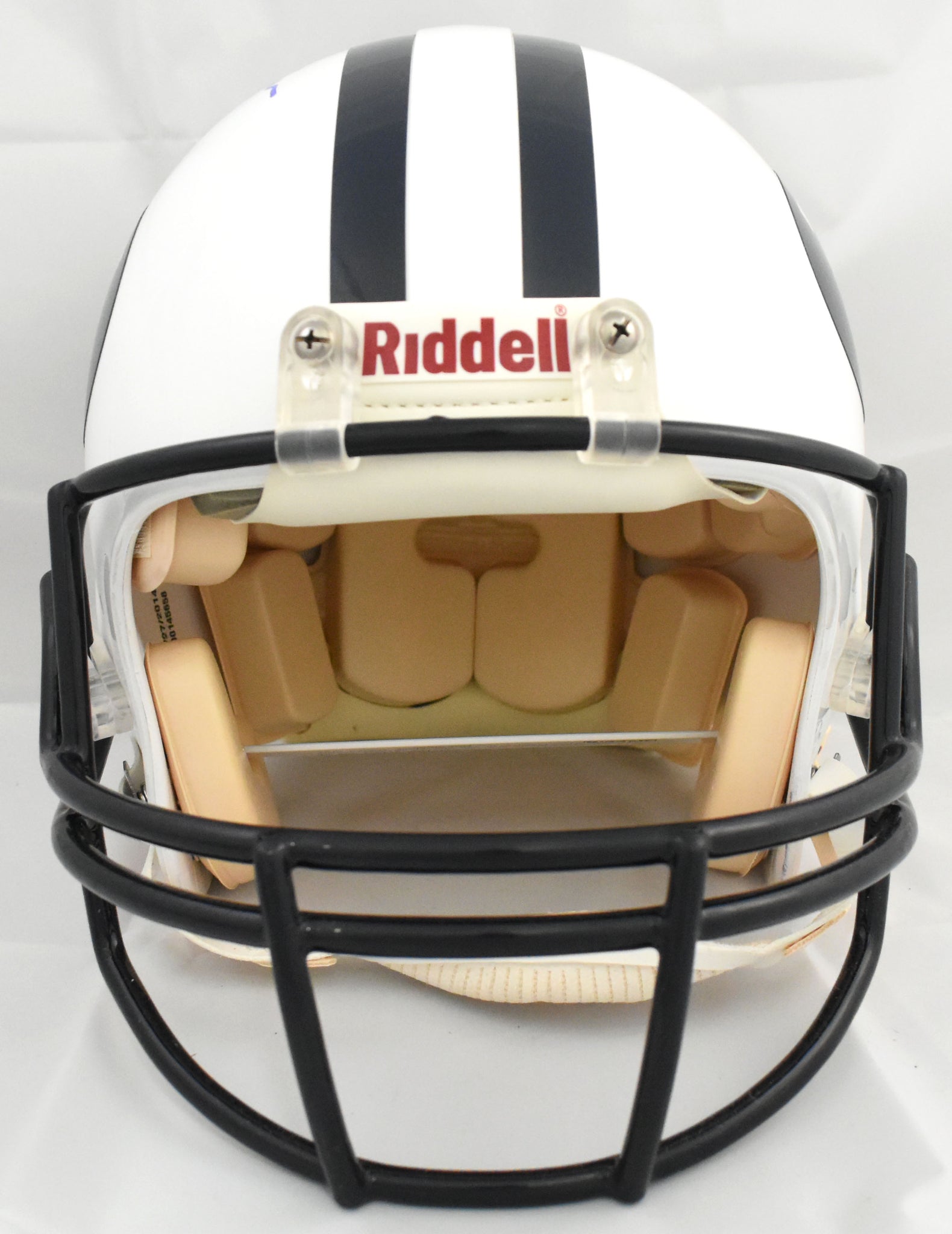 This is a Jim McMahon of the BYU Cougars autographed Riddell football full size Authentic helmet. This item has a Beckett Witnessed Authentication, which comes with a numbered hologram and a Beckett COA. You can view this item on the Beckett Authentication website, and it shows when and where the item was signed. It was signed either at a public autograph appearance or a private signing. This is a stock photo of the item. Although you may not receive this exact item, the item you receive is virtually identical, brand new, and in great shape. *Autograph location may vary*