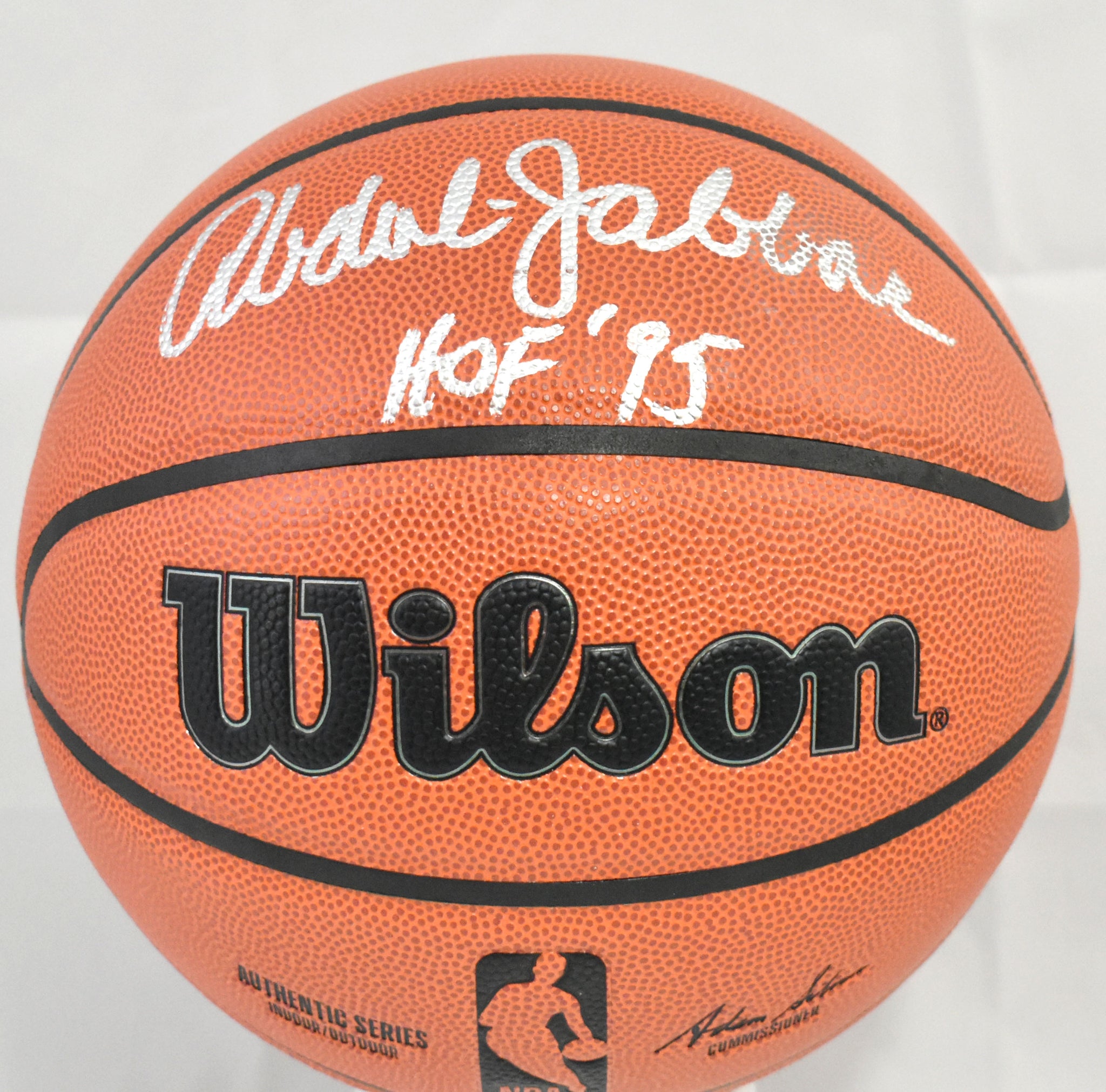 This is a hand autograph of Kareem Abdul-Jabbar on an NBA Wilson Basketball. Inscribed HOF. This item has a Beckett Authentication, which comes with a Beckett numbered hologram and a QR code for verification. It was signed either at a public autograph appearance or a private signing. This is a stock photo of the item. Although you may not receive this exact item, the item you receive is virtually identical and brand new in great shape.