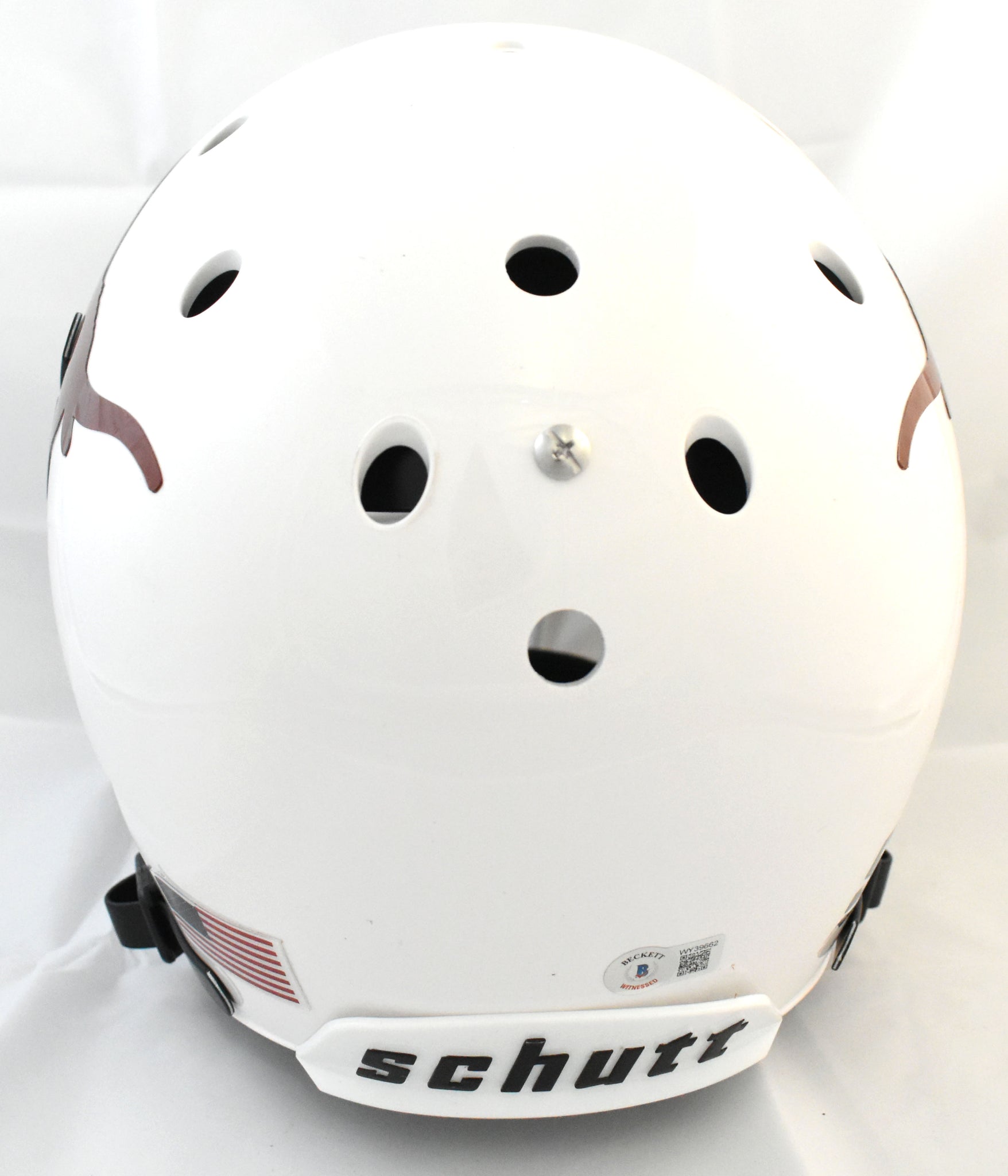 This is a Ricky Williams of the Texas Longhorns autographed Schutt football full size Replica helmet. Inscribed Heisman. This item has a Beckett Witnessed Authentication, which comes with a numbered hologram and a QR code for verification. You can view this item on the Beckett Authentication website, and it shows when and where the item was signed. It was signed either at a public autograph appearance or a private signing. This is a stock photo of the item. Although you may not receive this exact item, the item you receive is virtually identical, brand new, and in great shape. *Autograph location may vary*
