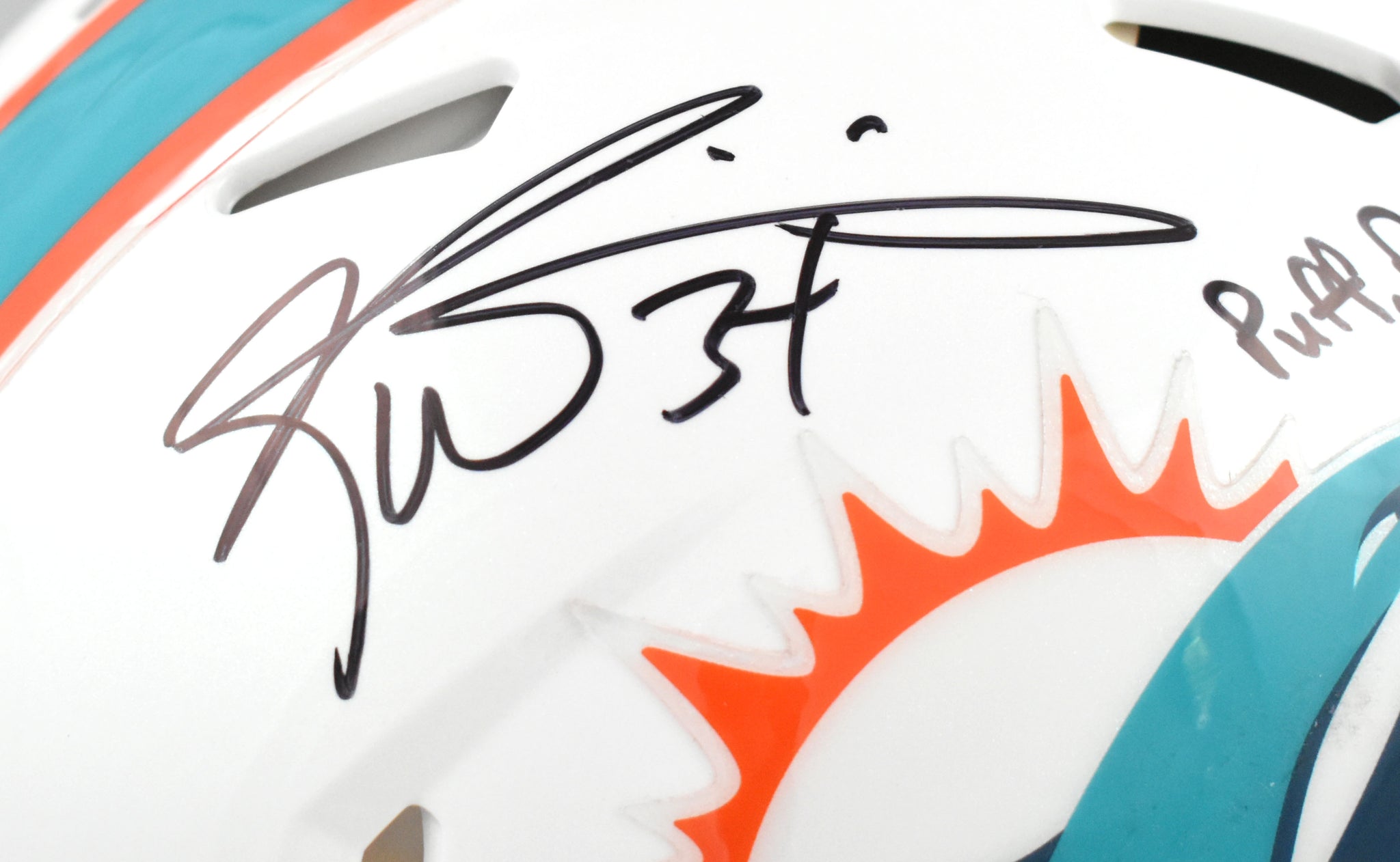 This is a Ricky Williams of the Miami Dolphins autographed Riddell football full size Speed Authentic helmet. Inscribed Smokin Bowls and Hitting Holes, Puff, Puff, Run and Smoke Weed Every day. This item has a Beckett Witnessed Authentication, which comes with a numbered hologram and matching COA. You can view this item on the Beckett Authentication website, and it shows when and where the item was signed. It was signed either at a public autograph appearance or a private signing. This is a stock photo of the item. Although you may not receive this exact item, the item you receive is virtually identical, brand new, and in great shape. *Autograph location may vary*