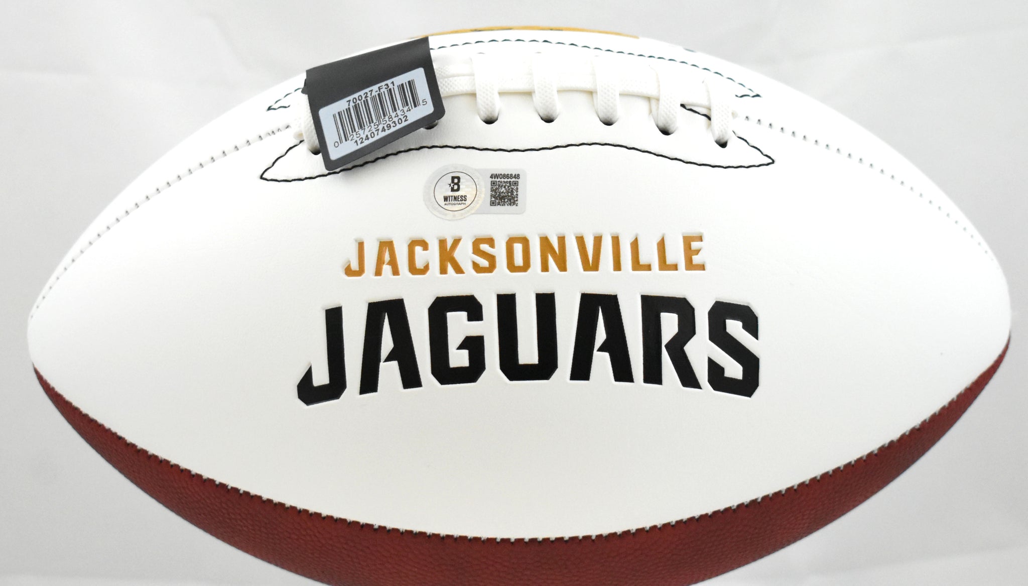 This is a hand autographed Football of Travis Hunter of the Jacksonville Jaguars. This is a Jacksonville Jaguars Logo Football. This item has a Beckett Witnessed Authentication, which comes with a numbered hologram and a QR code for verification. You can view this item on the Beckett website; it shows when and where the item was signed. It was signed either at a public autograph appearance or a private signing. This is a stock photo of the item. Although you may not receive this exact item, the item you receive is virtually identical and brand new in great shape.