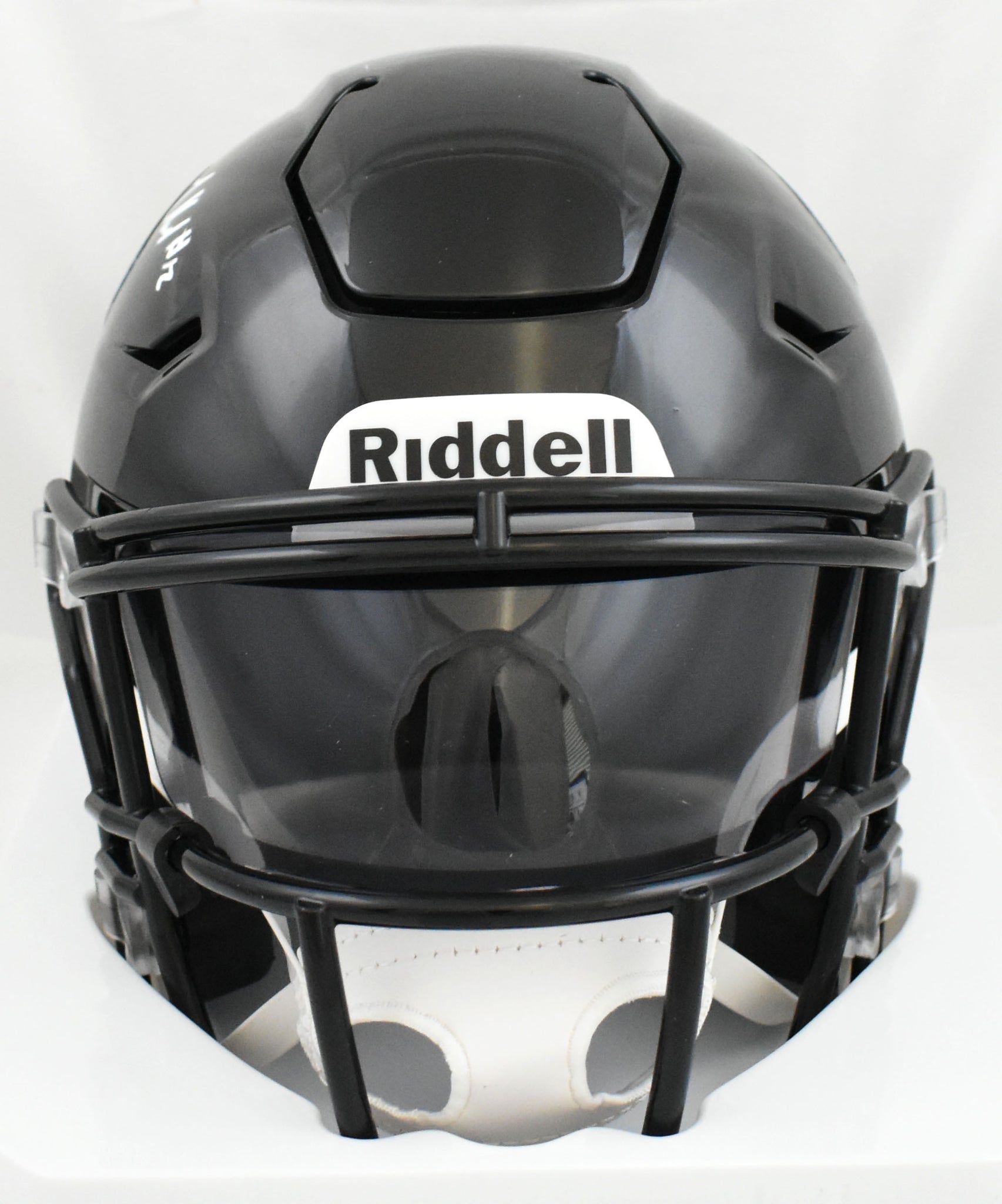 This is a Travis Hunter of the Jacksonville Jaguars autographed Riddell football Mid-Size SpeedFlex helmet. This item has a Beckett Witnessed Authentication, which comes with a numbered hologram and a QR code for verification. You can view this item on the Beckett Authentication website, and it shows when and where the item was signed. It was signed either at a public autograph appearance or a private signing. This is a stock photo of the item. Although you may not receive this exact item, the item you receive is virtually identical, brand new, and in great shape. *Autograph location may vary*