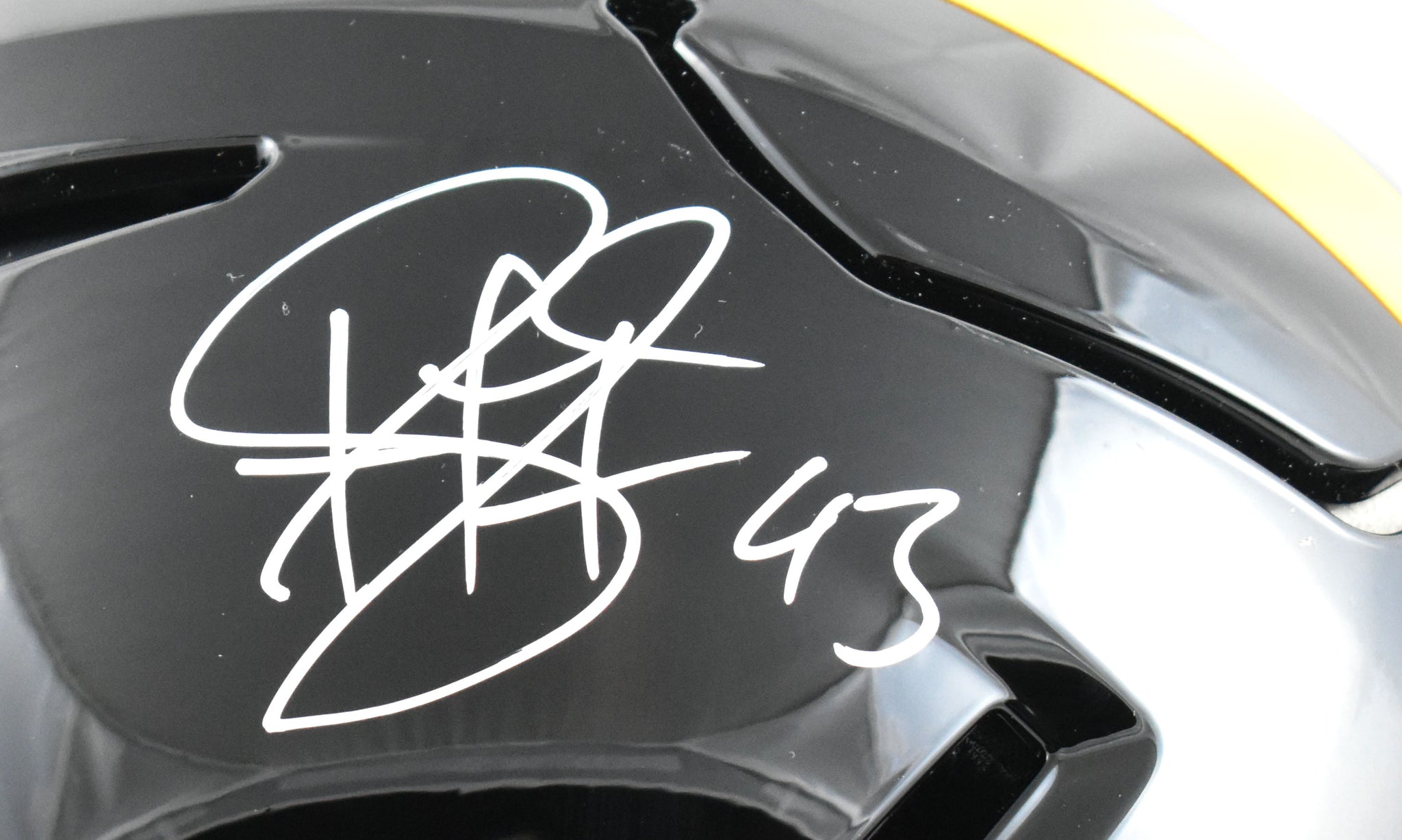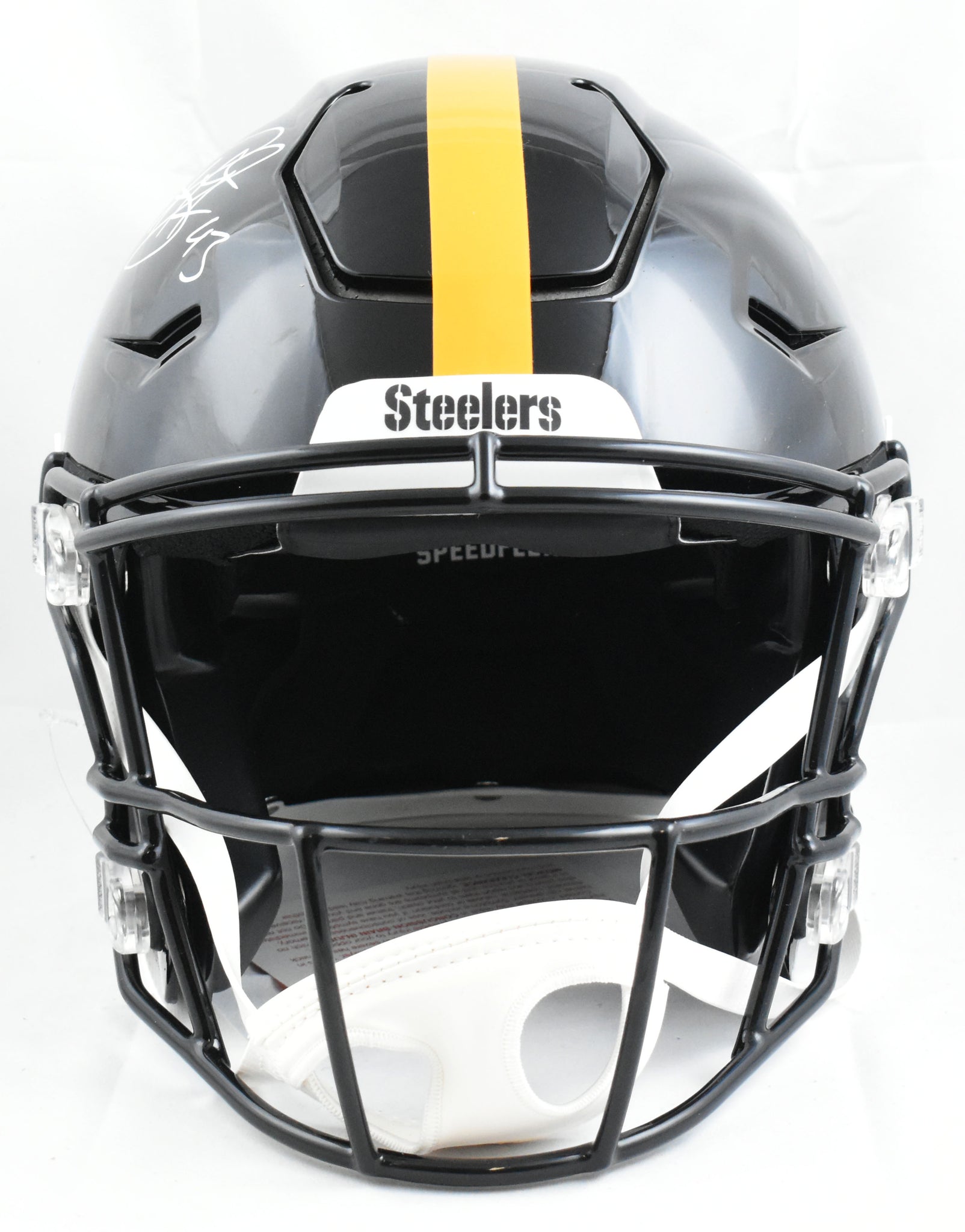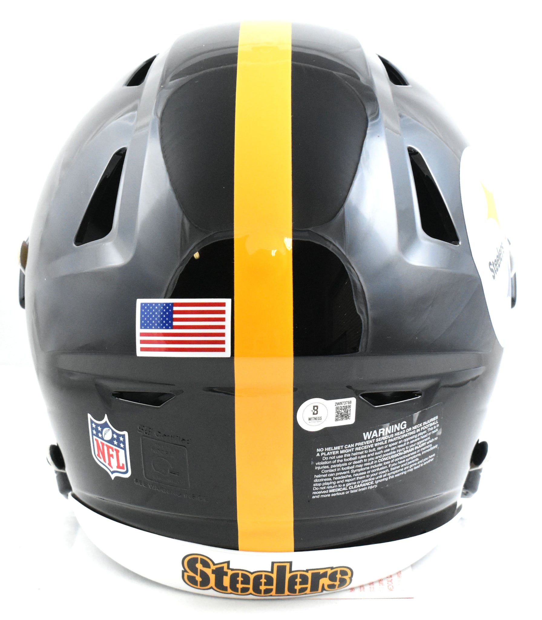This is a Troy Polamalu of the Pittsburgh Steelers Autographed Riddell football full size SpeedFlex Authentic helmet. This item has a Beckett Witnessed Authentication, which comes with a numbered hologram and a QR code for verification. You can view this item on the Beckett Authentication website and it shows when and where the item was signed. It was signed either at a public autograph appearance or a private signing. This is a stock photo of the item. Although you may not receive this exact item, the item you receive is virtually identical, brand new, and in great shape. *Autograph location may vary*