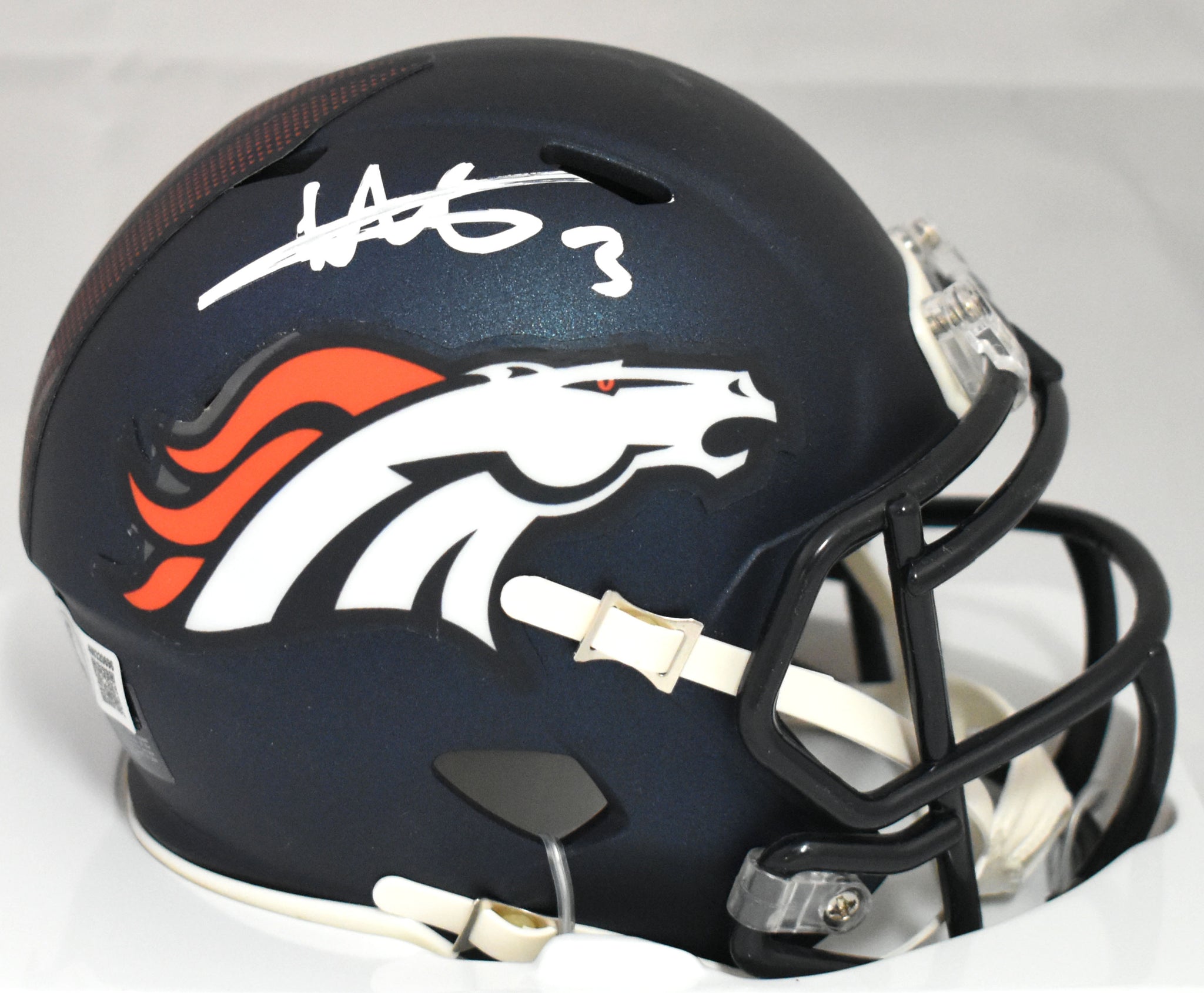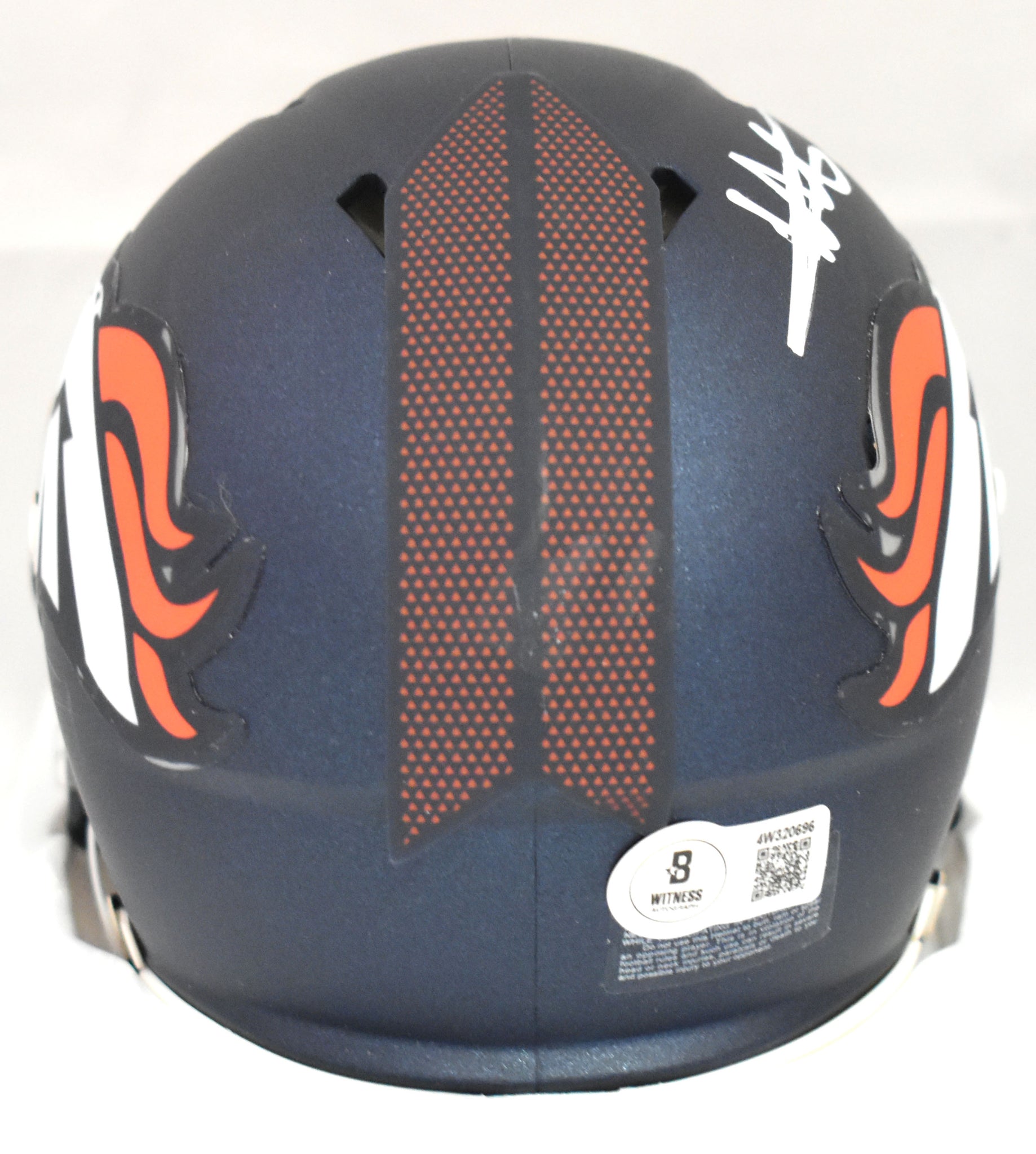 This is a hand autograph of Will Lutz of the Denver Broncos on a Riddell Football Speed Mini Helmet. This item has a Beckett Witnessed Authentication, which comes with a numbered hologram and a QR code for verification. You can view this item on the Beckett Authentication website, and it shows when and where the item was signed. It was signed either at a public autograph appearance or a private signing. This is a stock photo of the item. Although you may not receive this exact item, the item you receive is virtually identical and brand new in great shape.
