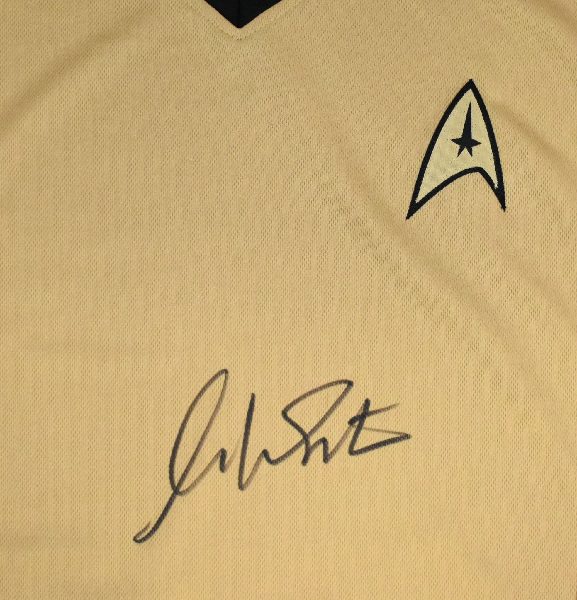 THIS IS NOT A Real Costume. THIS HAS NO TAGS, NO LOGOS, NO EMBLEMS. This is a hand autograph of William Shatner of the Star Trek Franchise on a Custom made (non-name brand) Authentic Style Costume. This item has a Beckett Witnessed Authentication, which comes with a Beckett numbered sticker hologram and a QR Code for verification. You can view this item on the Beckett Authentication website. It was signed either at a public autograph appearance or a private signing. This is a stock photo of the item. Although you may not receive this exact item, the item you receive is virtually identical and brand new in great shape. Jersey size is XL.