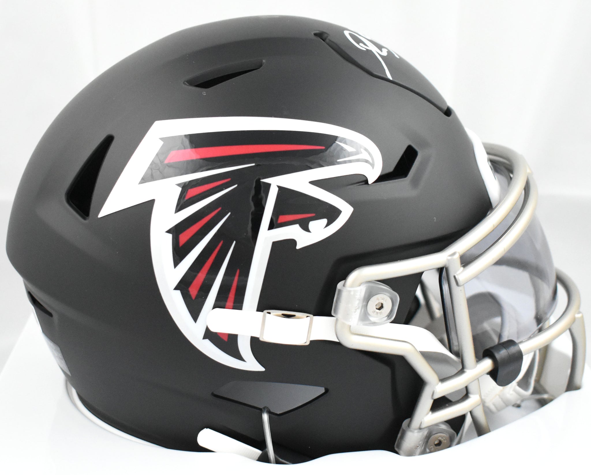This is a Deion Sanders of the Atlanta Falcons autographed Riddell football Mid-Size SpeedFlex helmet. This item has a Beckett Witnessed Authentication, which comes with a numbered hologram and a QR code for verification. You can view this item on the Beckett Authentication website, and it shows when and where the item was signed. It was signed either at a public autograph appearance or a private signing. This is a stock photo of the item. Although you may not receive this exact item, the item you receive is virtually identical, brand new, and in great shape. *Autograph location may vary*