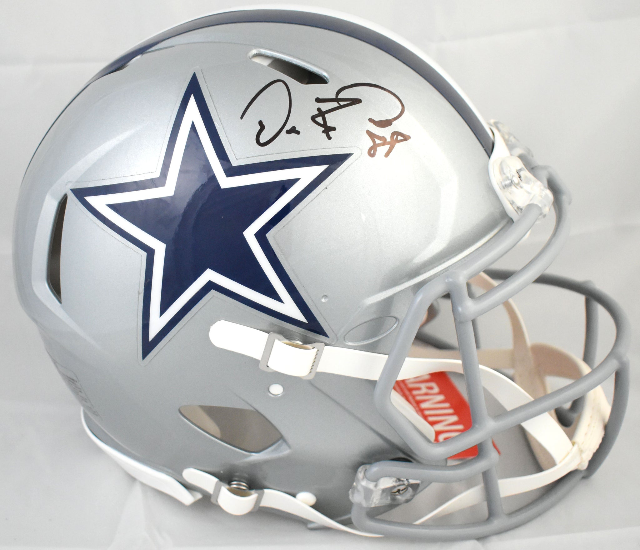This is a Dez Bryant of the Dallas Cowboys autographed Riddell football full size Speed Authentic helmet. This item has a Beckett Witnessed Authentication, which comes with a numbered hologram and a QR code for verification. You can view this item on the Beckett Authentication website, and it shows when and where the item was signed. It was signed either at a public autograph appearance or a private signing. This is a stock photo of the item. Although you may not receive this exact item, the item you receive is virtually identical, brand new, and in great shape. *Autograph location may vary*