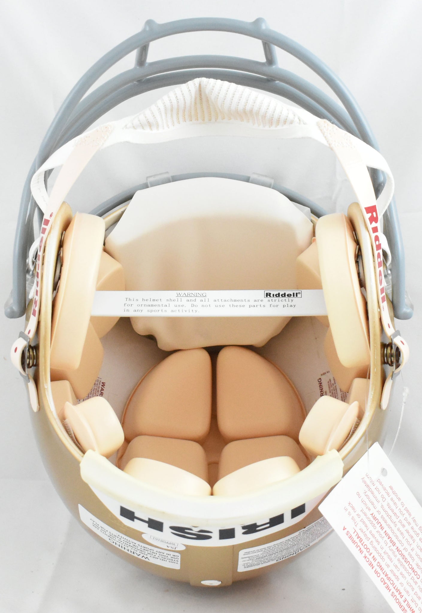 This is a Joe Montana of the Notre Dame Fighting Irish autographed Riddell football full size Authentic helmet. This item has a James Spence Witnessed Authentication, which comes with a numbered hologram and a matching JSA COA. You can view this item on the JSA Authentication website. It was signed either at a public autograph appearance or a private signing. This is a stock photo of the item. Although you may not receive this exact item, the item you receive is virtually identical, brand new, and in great shape. *Autograph location may vary*