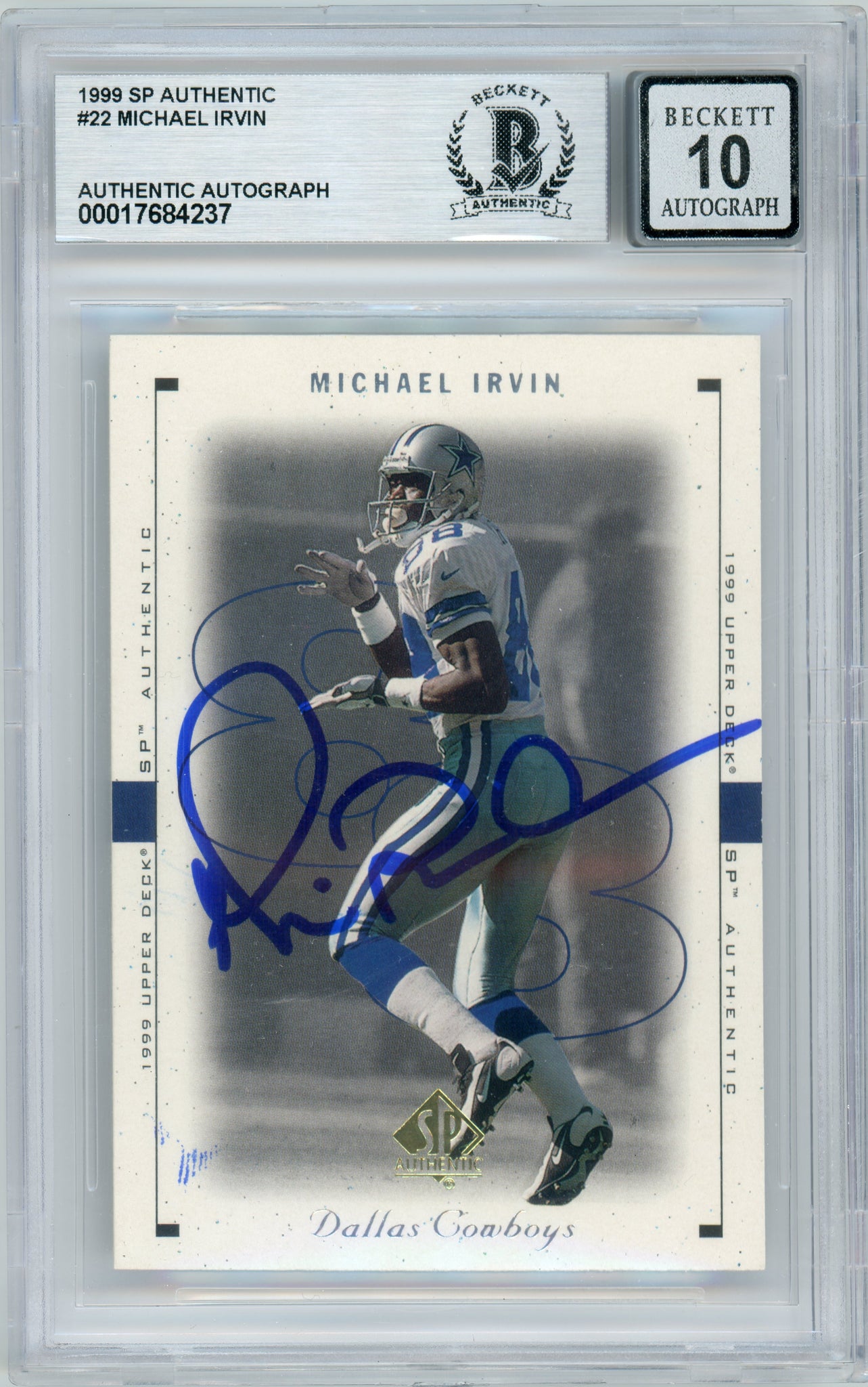 1999 SP Authentic #22 Michael Irvin Dallas Cowboys BGS Autograph 10