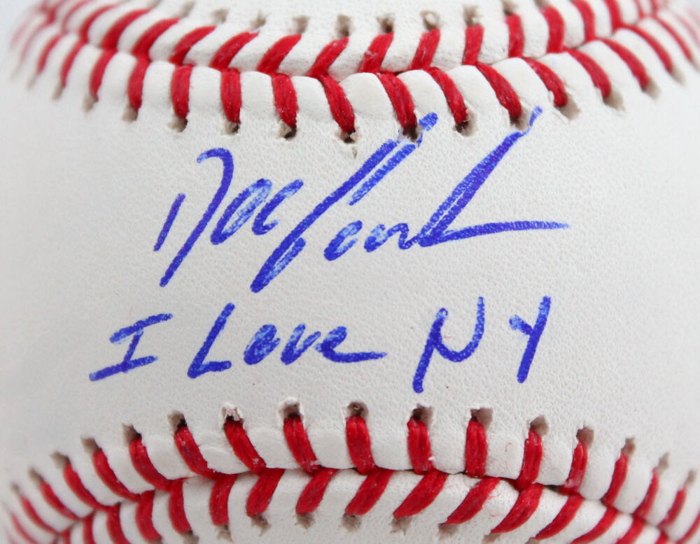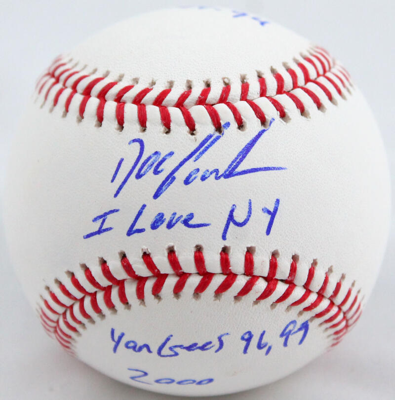 This is a Dwight Doc Gooden hand autographed Official Game Ball Major League Baseball. Inscribed I love NY, Yankees 96,99,2000, Mets 84-94. This item has a Beckett Witness Authentication, which comes with a numbered hologram and a QR code for verification. You can view this item on the Beckett website and it shows when and where the item was signed. It was signed either at a public autograph appearance or a private signing. This is a stock photo of the item. Although you may not receive this exact item, the item you receive is virtually identical, brand new, and in great shape. We appreciate your interest in our items and we hope that we can make all transactions professional and satisfying.