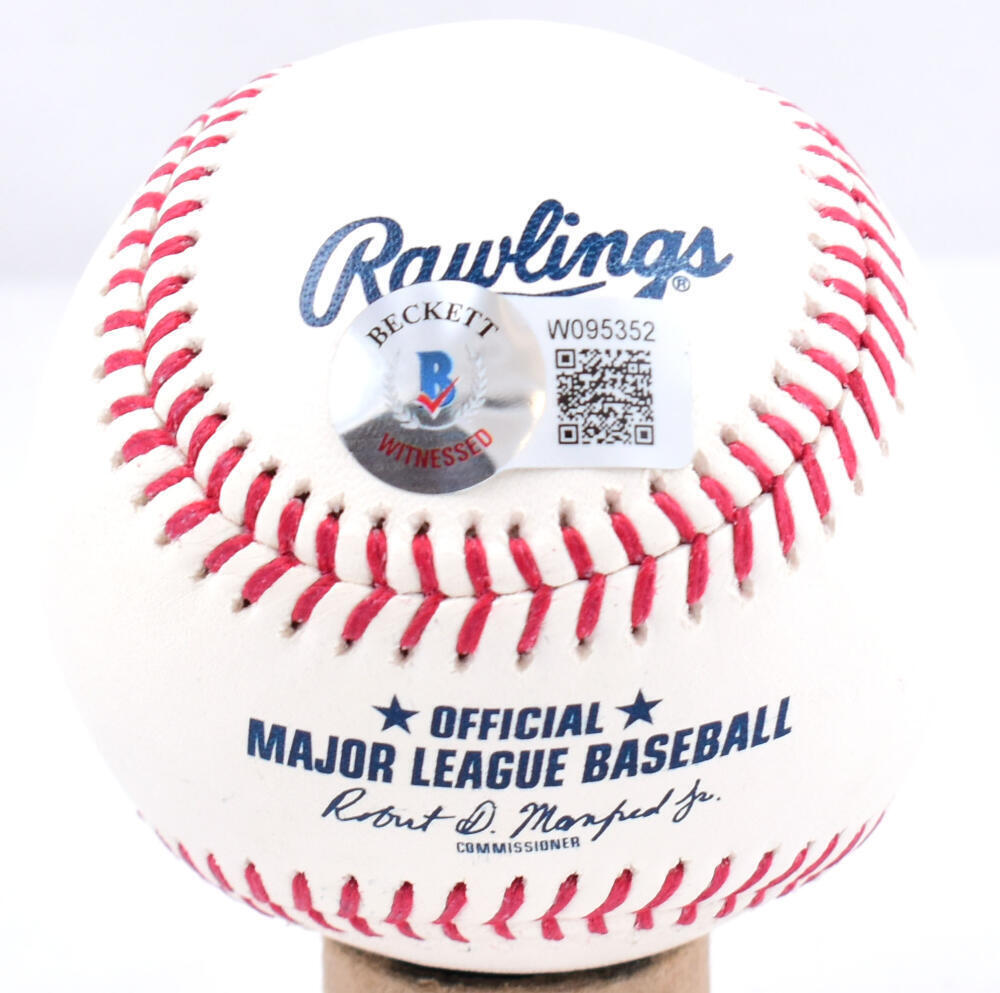 This is a Vladimir Guerrero Sr. hand autographed Rawlings Official Game Ball Major League Baseball inscribed with HOF 18, 8x Silver Slugger, 9x All Star. This item has a Beckett Witnessed Authentication, which comes with a Beckett numbered hologram and a QR code for verification. You can view this item on the Beckett website. It was signed either at a public autograph appearance or a private signing. This is a stock photo of the item. Although you may not receive this exact item, the item you receive is virtually identical, brand new, and in great shape.