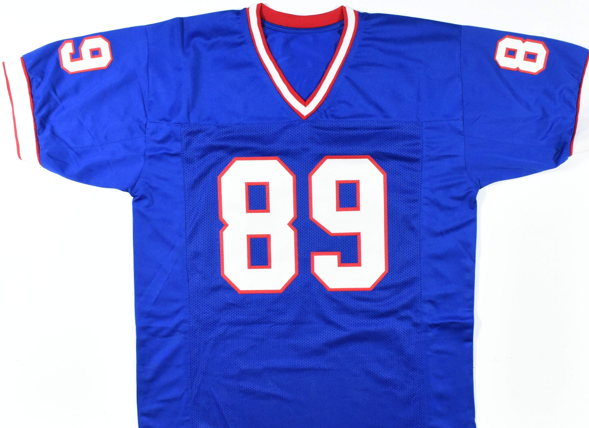 THIS IS NOT AN NFL JERSEY. THIS HAS NO TAGS, NO LOGOS, NO EMBLEMS. This is a hand autograph of Steve Tasker of the Buffalo Bills on a Custom Made (non-name brand) Authentic Style Jersey with stitched letters and numbers. This item has a Prova Authentication, which comes with a Prova numbered hologram. You can view this item on the Prova Authentication website. It was signed either at a public autograph appearance or a private signing. This is a stock photo of the item. Although you may not receive this exact item, the item you receive is virtually identical and brand new in great shape. Jersey size is XL.