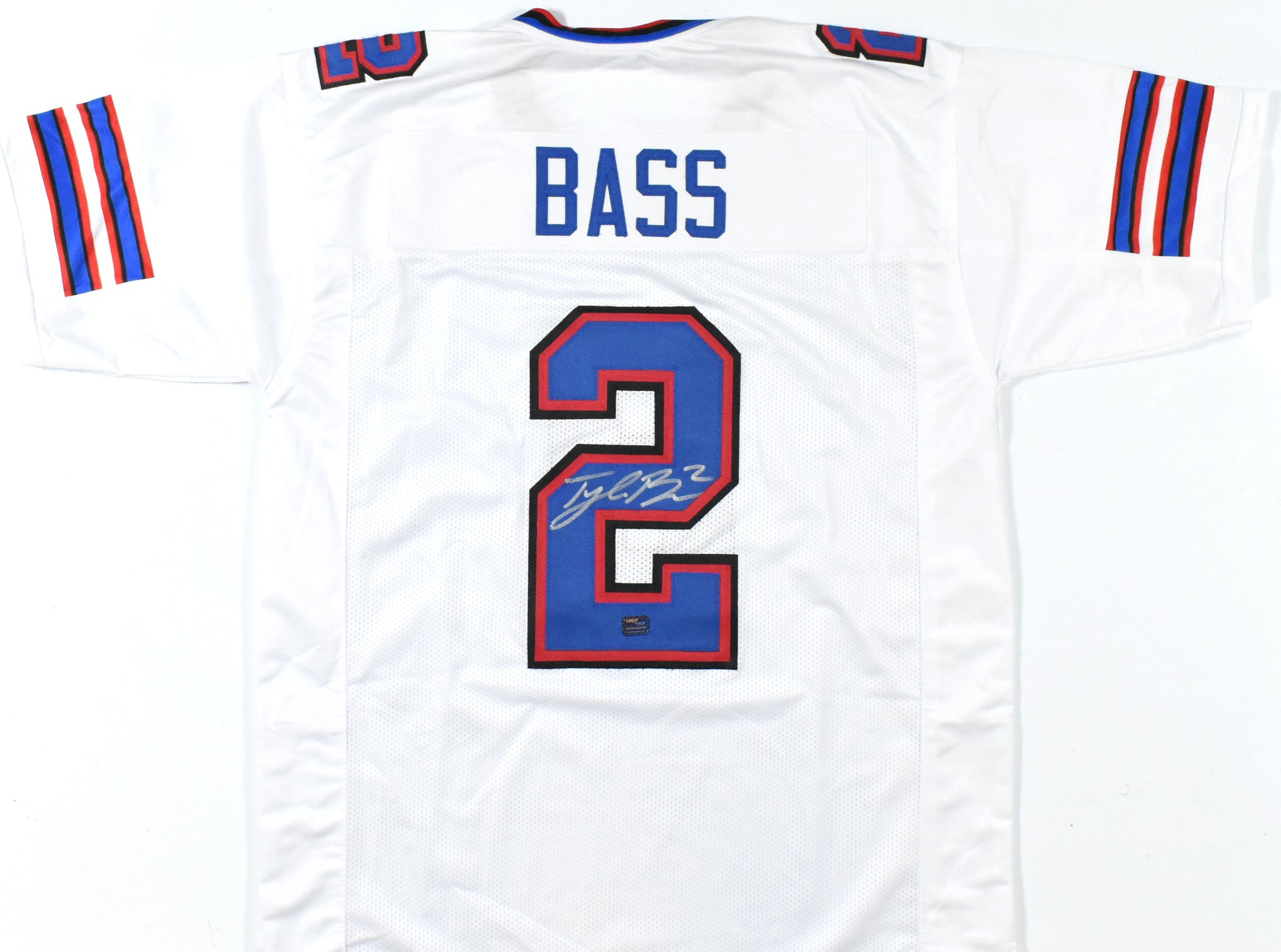 THIS IS NOT AN NFL JERSEY. THIS HAS NO TAGS, NO LOGOS, NO EMBLEMS. This is a hand autograph of Tyler Bass of the Buffalo Bills on a Custom Made (non-name brand) Authentic Style Jersey with stitched letters and numbers. This item has a Prova Authentication, which comes with a Prova numbered hologram. You can view this item on the Prova Authentication website. It was signed either at a public autograph appearance or a private signing. This is a stock photo of the item. Although you may not receive this exact item, the item you receive is virtually identical and brand new in great shape. Jersey size is XL.