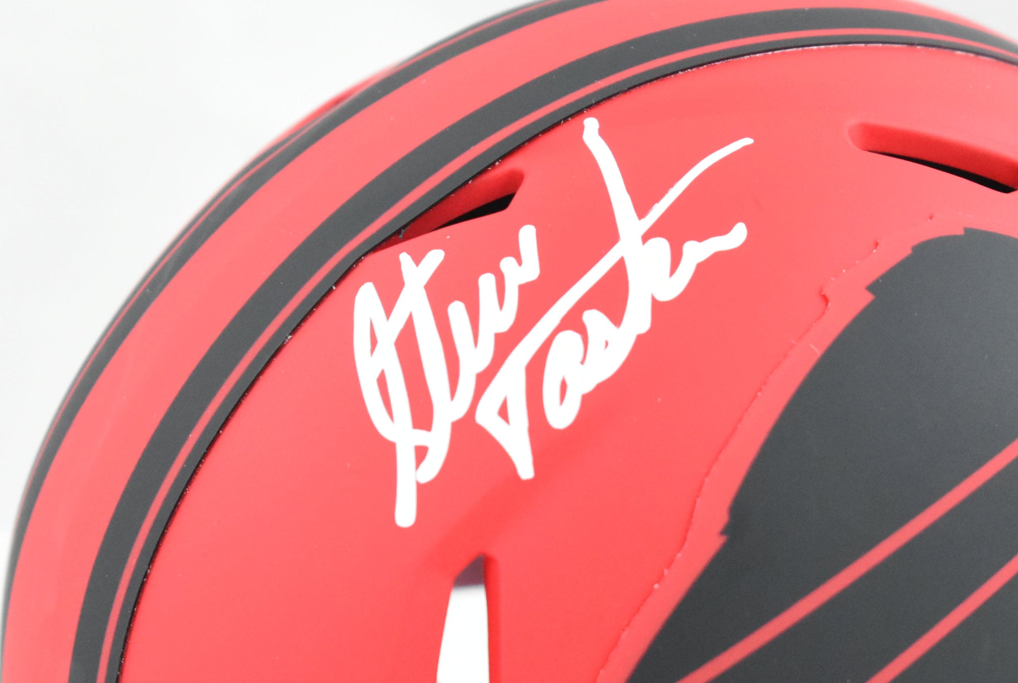This is a hand autograph of Steve Tasker of the Buffalo Bills on a Riddell Football Rave Speed Mini Helmet. This item has a Prova Authentication, which comes with a numbered sticker hologram. You can view this item on the Prova Authentication website and it shows when and where the item was signed. It was signed either at a public autograph appearance or a private signing. This is a stock photo of the item. Although you may not receive this exact item, the item you receive is virtually identical and brand new in great shape.