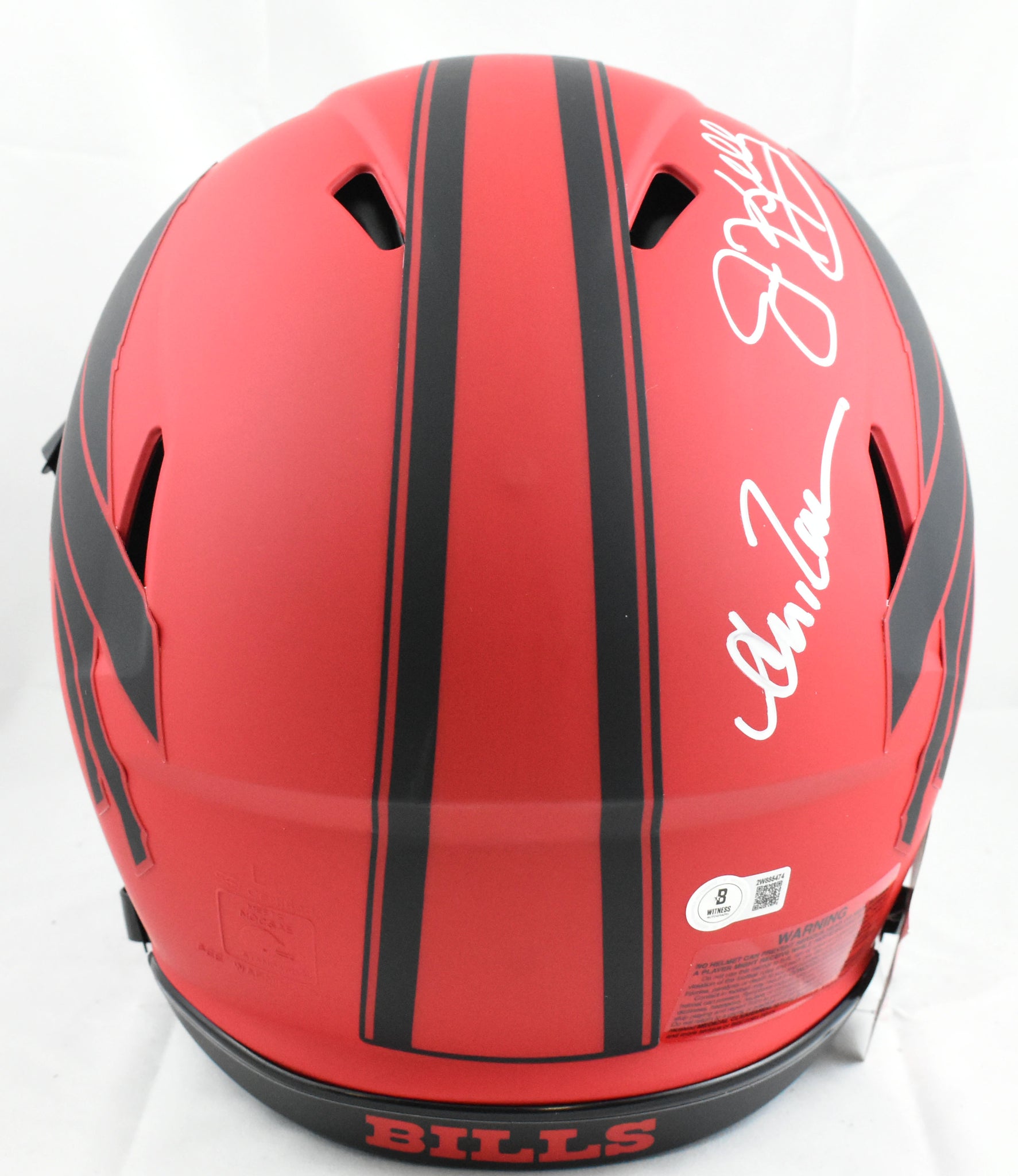 This is a Thurman Thomas, Jim Kelly, Andre Reed of the Buffalo Bills Autographed Riddell football full size Rave Speed Authentic helmet. This item has a Beckett Witnessed Authentication, which comes with a numbered hologram and a QR code for verification. You can view this item on the Beckett Authentication website and it shows when and where the item was signed. It was signed either at a public autograph appearance or a private signing. This is a stock photo of the item. Although you may not receive this exact item, the item you receive is virtually identical, brand new, and in great shape. *Autograph location may vary*