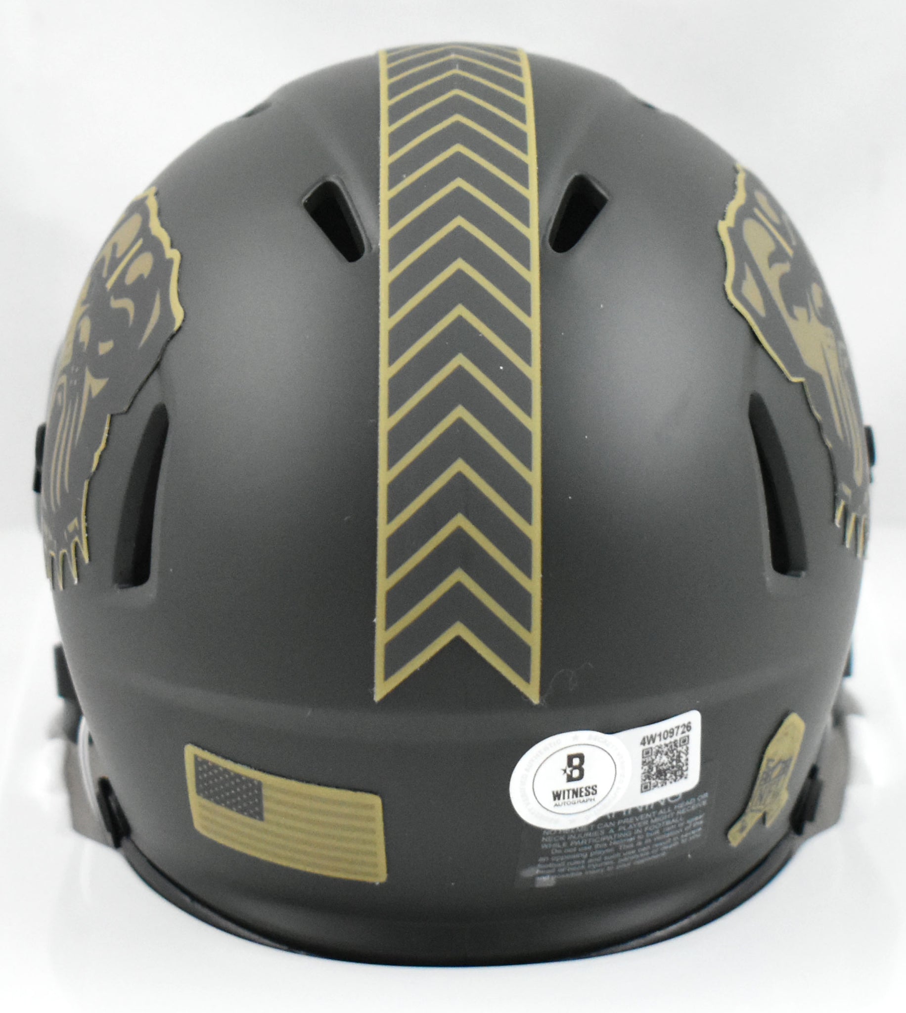 This is a hand autograph of Quinshon Judkins of the Cleveland Browns on a Riddell Football Salute to Service 2025 Speed Mini Helmet. This item has a Beckett Witnessed Authentication, which comes with a numbered hologram and a QR code for verification. You can view this item on the Beckett Authentication website, and it shows when and where the item was signed. It was signed either at a public autograph appearance or a private signing. This is a stock photo of the item. Although you may not receive this exact item, the item you receive is virtually identical and brand new in great shape.