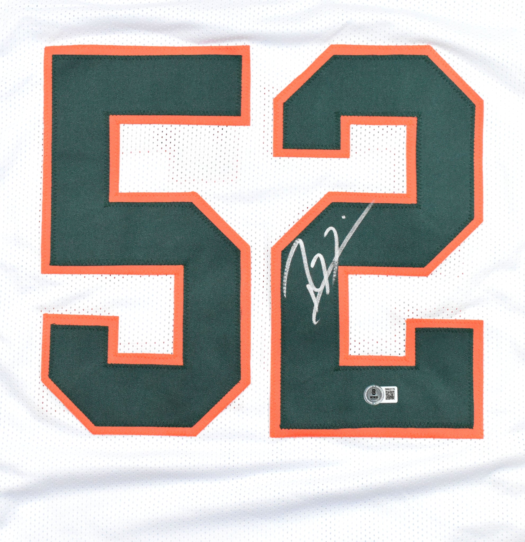 THIS IS NOT AN NCAA JERSEY. THIS HAS NO TAGS, NO LOGOS, NO EMBLEMS. This is a hand autograph of Ray Lewis of University of Miami on a Custom Made (non name brand) Authentic Style Jersey with stitched letters and numbers. This item has a Beckett Witnessed Authentication, which comes with a Beckett numbered sticker hologram and a QR Code for verification. You can view this item on the Beckett Authentication website. It was signed either at a public autograph appearance or a private signing. This is a stock photo of the item. Although you may not receive this exact item, the item you receive is virtually identical and brand new in great shape. Jersey size is XL.