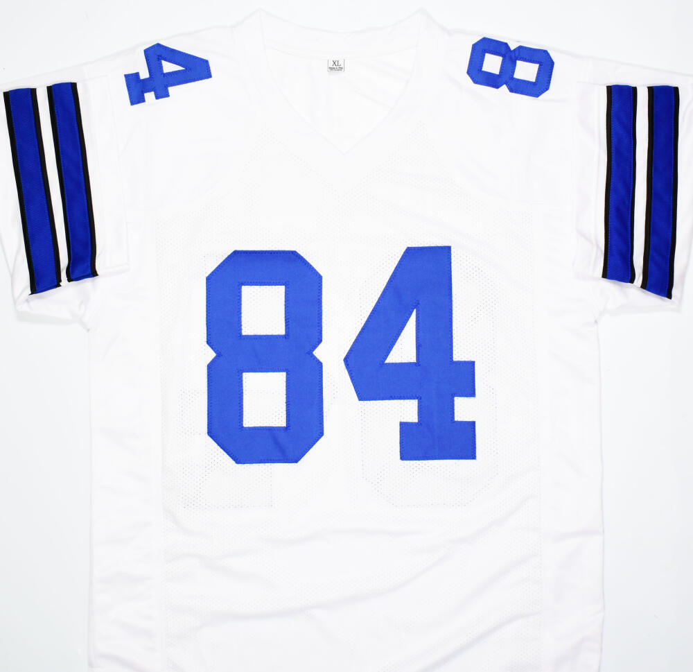 THIS IS NOT AN NFL JERSEY - IT HAS NO TAGS, NO LOGOS, NO EMBLEMS. This is a Jay Novacek of the Dallas Cowboys hand autographed custom made (non-name brand) authentic style jersey (stitched letters and numbers). This item has a Beckett Witnessed Authentication, which comes with a Beckett numbered hologram and a QR code for verification. You can view this item on the Beckett Authentication website, it shows when and where the item was signed. It was signed either at a public autograph appearance or a private signing. This is a stock photo of the item. Although you may not receive this exact item, the item you receive is virtually identical, brand new, and in great shape. Jersey size is XL.