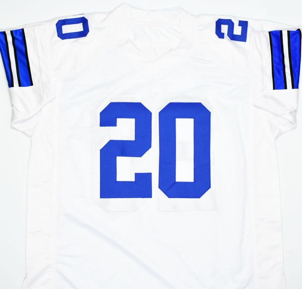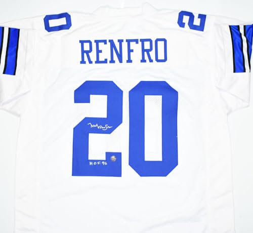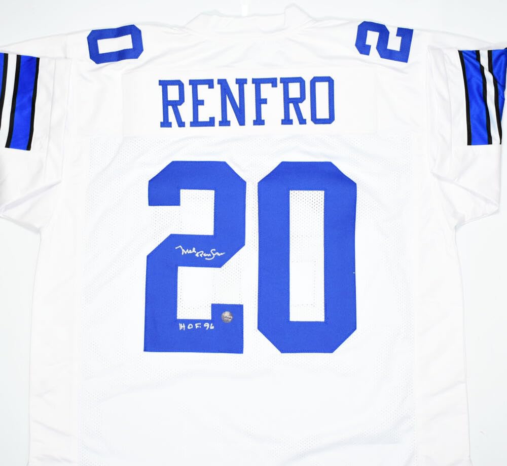 THIS IS NOT AN NFL JERSEY. THIS HAS NO TAGS, NO LOGOS, NO EMBLEMS. This is a hand autograph of Mel Renfro on a Custom Made (non name brand) Authentic Style Jersey with stitched letters and numbers. This item has a Prova Authentication, which comes with a numbered sticker hologram. You can view this item on the Prova website and it shows when and where the item was signed. It was signed either at a public autograph appearance or a private signing. This is a stock photo of the item. Although you may not receive this exact item, the item you receive is virtually identical and brand new in great shape. Jersey size is XL.