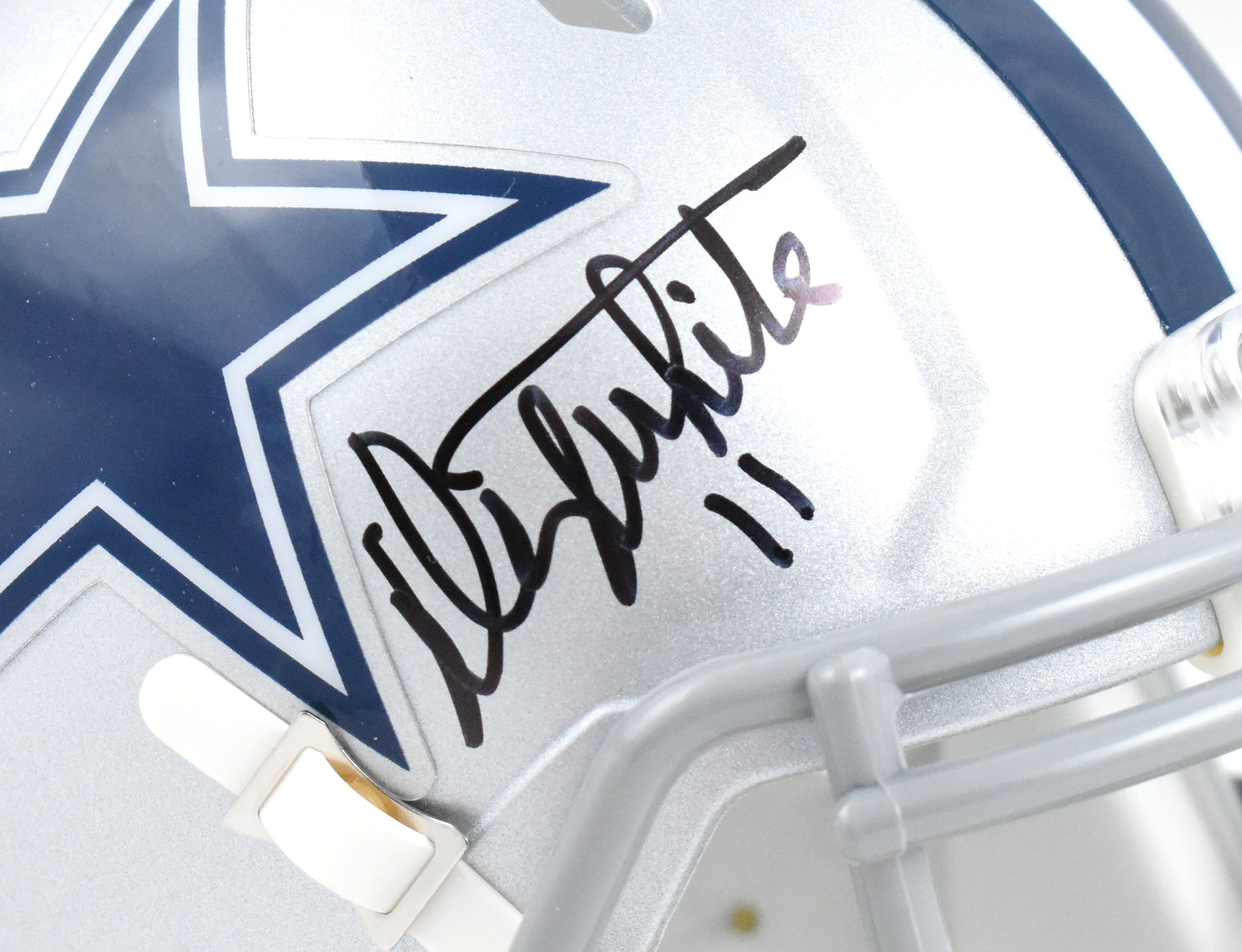 This is a hand autograph of Danny White of the Dallas Cowboys on a Riddell Football Speed Mini Helmet. This item has a Beckett Witnessed Authentication, which comes with a numbered hologram and a QR code for verification. You can view this item on the Beckett Authentication website and it shows when and where the item was signed. It was signed either at a public autograph appearance or a private signing. This is a stock photo of the item. Although you may not receive this exact item, the item you receive is virtually identical and brand new in great shape.