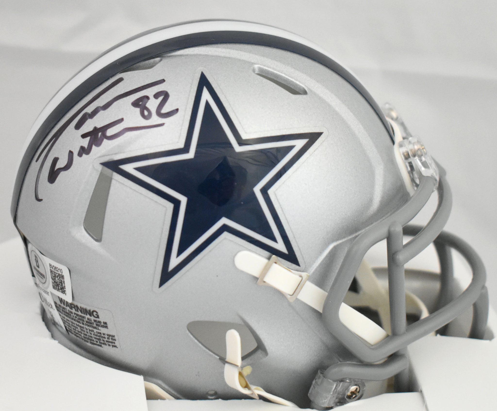 This is a hand autograph of Jason Witten of the Dallas Cowboys on a Riddell Speed Mini Helmet. This item has a Beckett Authentication, which comes with a numbered hologram and a QR code for verification. You can view this item on the Beckett Authentication website. It was signed either at a public autograph appearance or a private signing. This is a stock photo of the item. Although you may not receive this exact item, the item you receive is virtually identical and brand new in great shape.