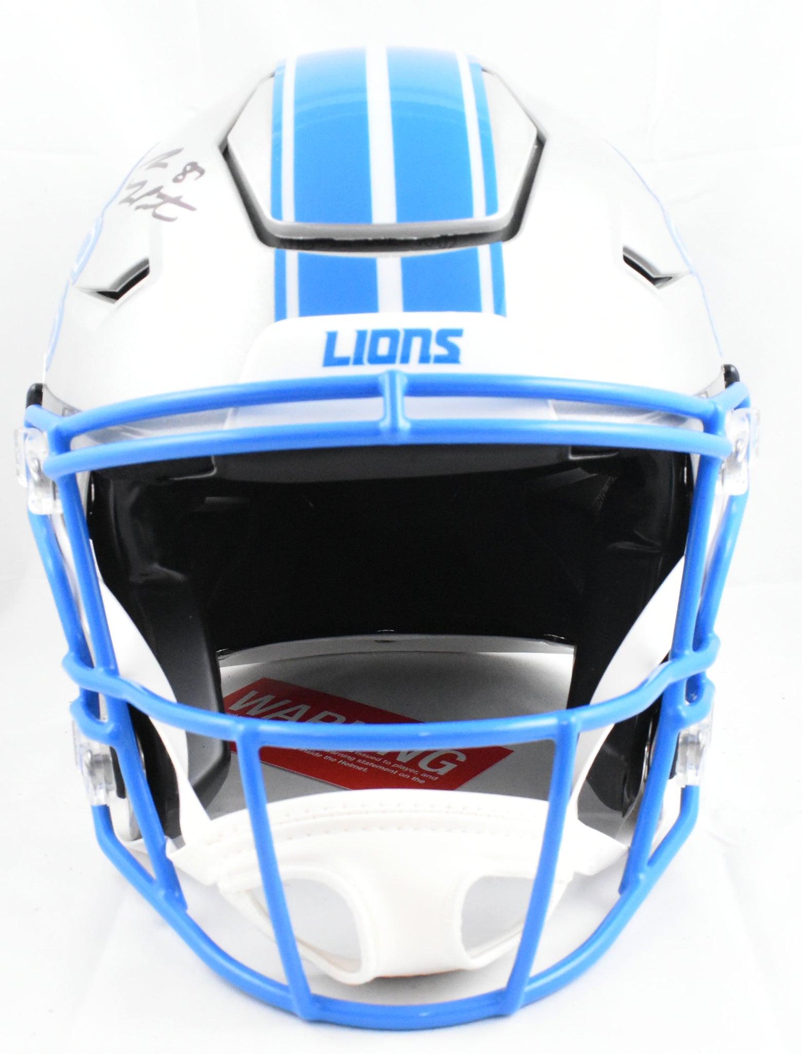 This is a Sam LaPorta of the Detroit Lions Autographed Riddell football full size SpeedFlex Authentic helmet. This item has a Beckett Witnessed Authentication, which comes with a numbered hologram and a QR code for verification. You can view this item on the Beckett Authentication website and it shows when and where the item was signed. It was signed either at a public autograph appearance or a private signing. This is a stock photo of the item. Although you may not receive this exact item, the item you receive is virtually identical, brand new, and in great shape. *Autograph location may vary*