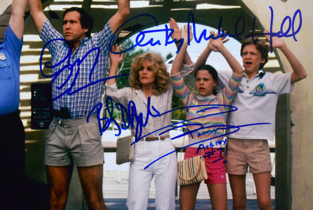 Chevy Chase Anthony Michael Hall Dana Barron Beverly D' Angelo Autographed 11X14 Vacation Photo #1-Beckett W Hologram