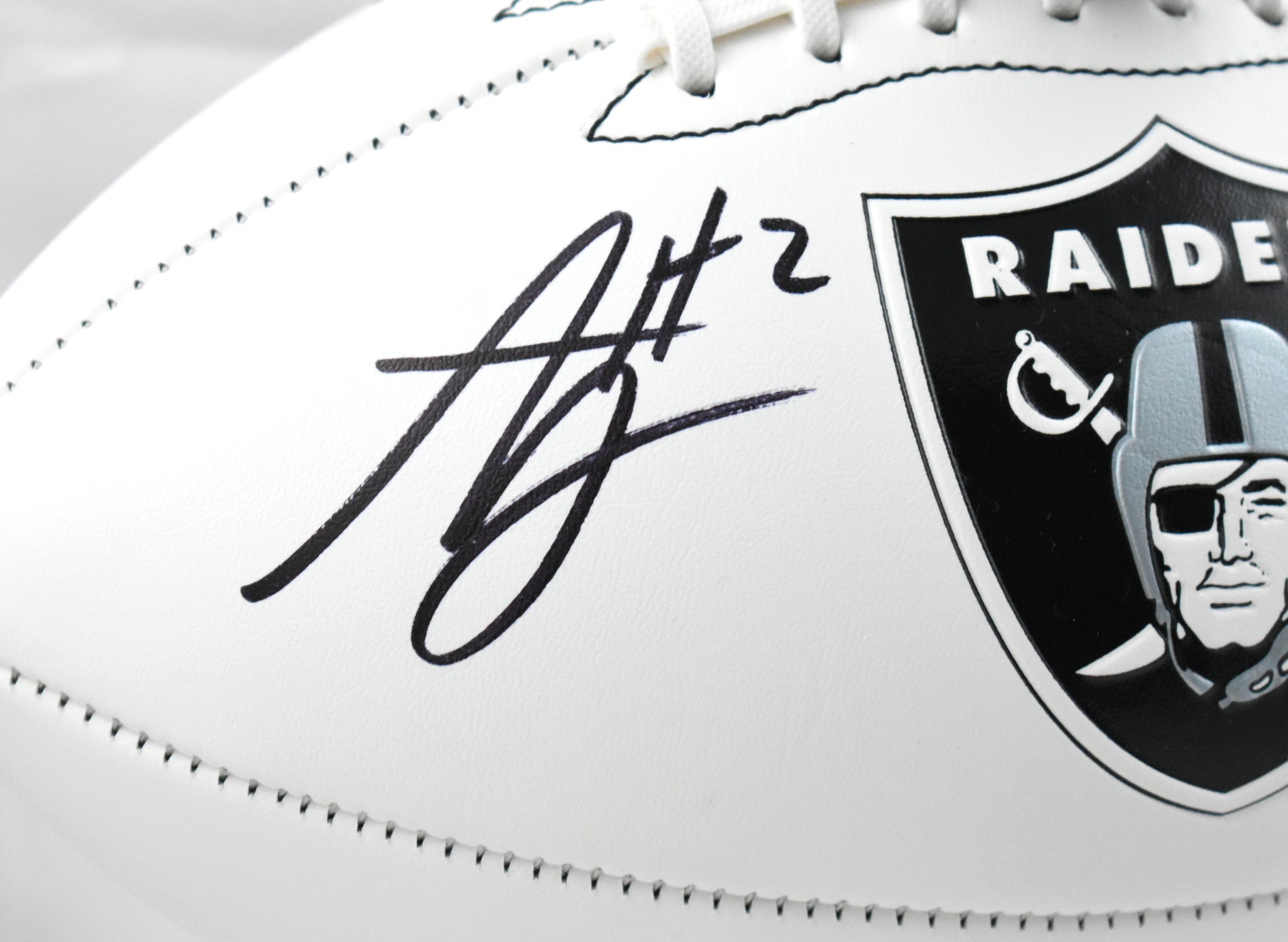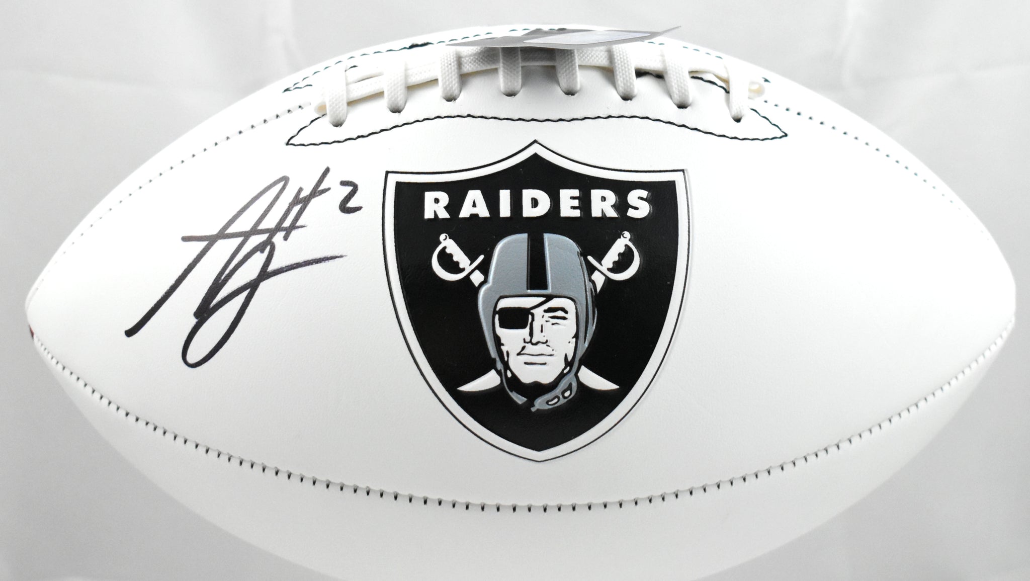 This is a hand autographed Football of Ashton Jeanty of the Las Vegas Raiders. This is a Las Vegas Raiders Logo Football. This item has a Beckett Witnessed Authentication, which comes with a numbered hologram and a QR code for verification. You can view this item on the Beckett website; it shows when and where the item was signed. It was signed either at a public autograph appearance or a private signing. This is a stock photo of the item. Although you may not receive this exact item, the item you receive is virtually identical and brand new in great shape.