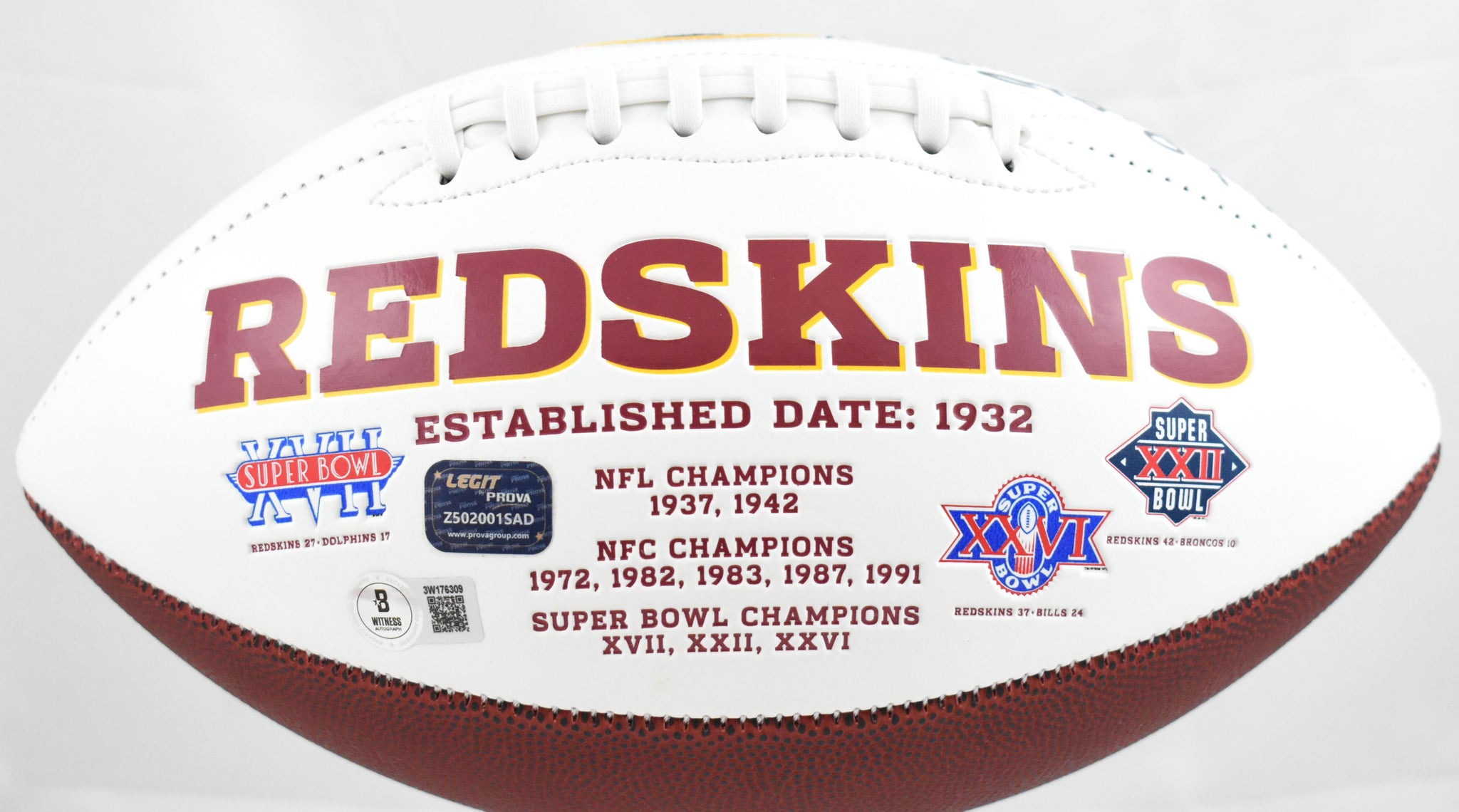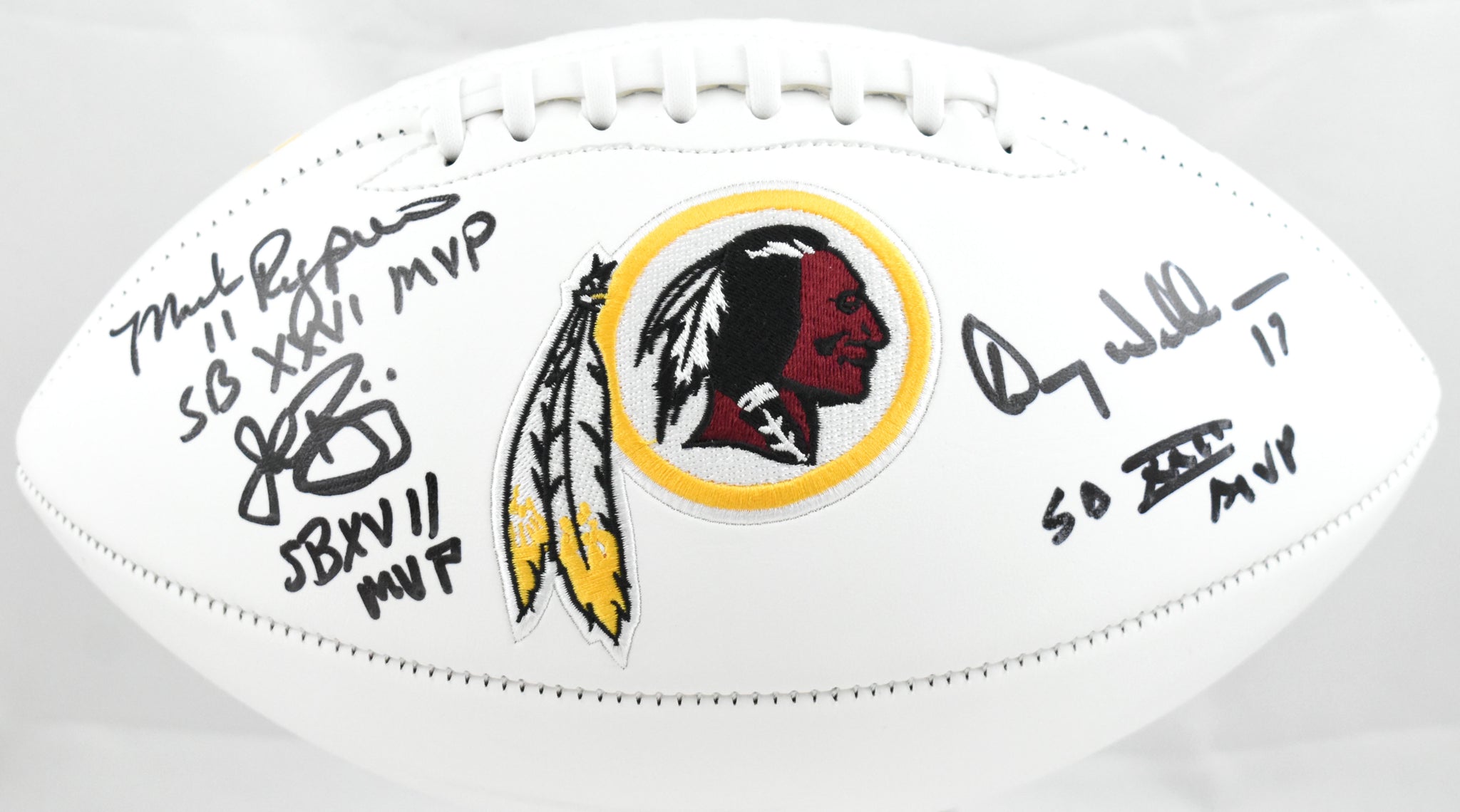 This is a hand autographed Football of Mark Rypien, John Riggins and Doug Williams of the Washington Redskins. This is a Washington Redskins Logo Football. Inscribed SB MVP. This item has a Beckett Witnessed Authentication, which comes with a numbered hologram and a QR code for verification. You can view this item on the Beckett website, it shows when and where the item was signed. It was signed either at a public autograph appearance or a private signing. This is a stock photo of the item. Although you may not receive this exact item, the item you receive is virtually identical and brand new in great shape.
