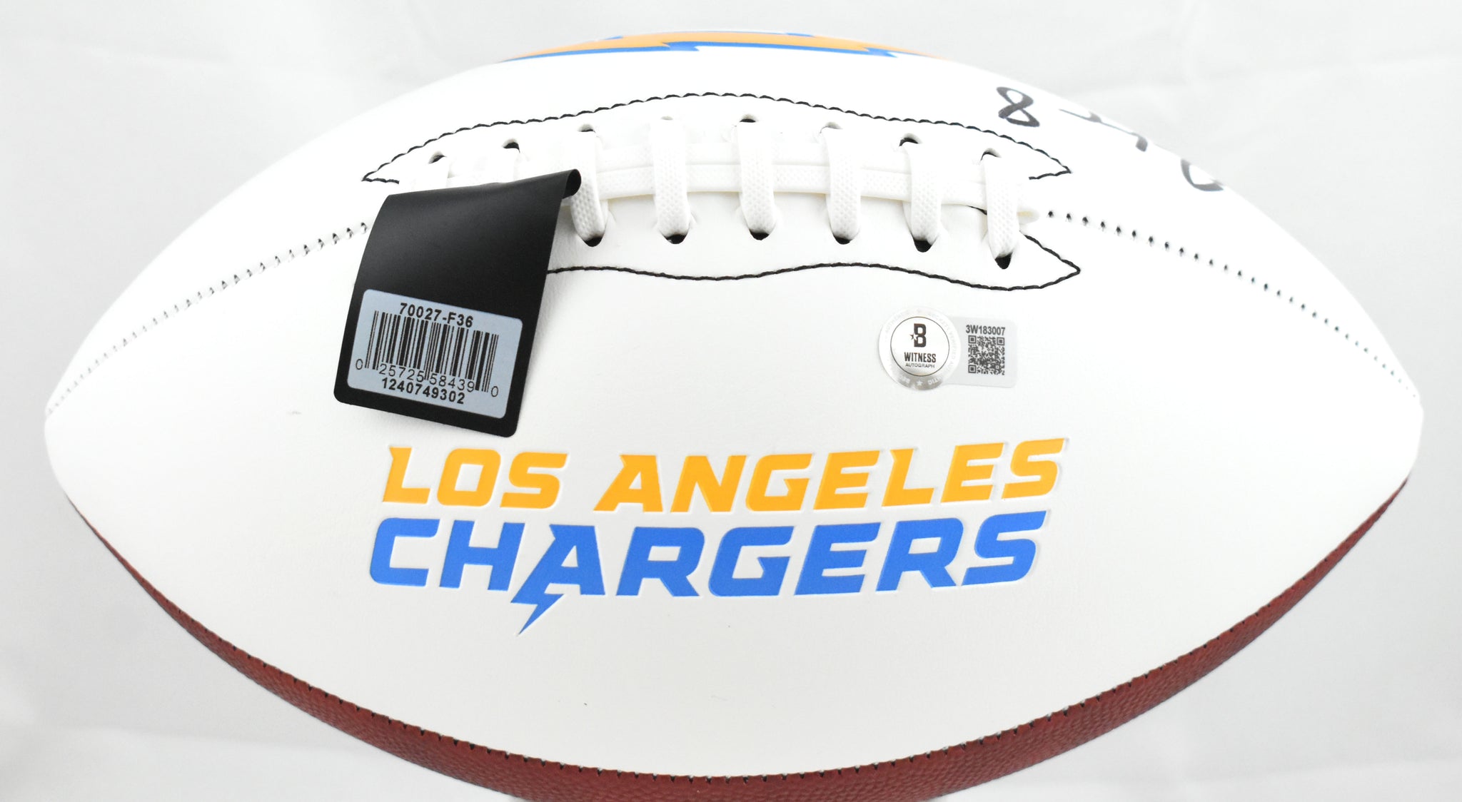 This is a hand autographed Football of Omarion Hampton of the Los Angeles Chargers. This is a Los Angeles Chargers Logo Football. This item has a Beckett Witnessed Authentication, which comes with a numbered hologram and a QR code for verification. You can view this item on the Beckett website, it shows when and where the item was signed. It was signed either at a public autograph appearance or a private signing. This is a stock photo of the item. Although you may not receive this exact item, the item you receive is virtually identical and brand new in great shape.
