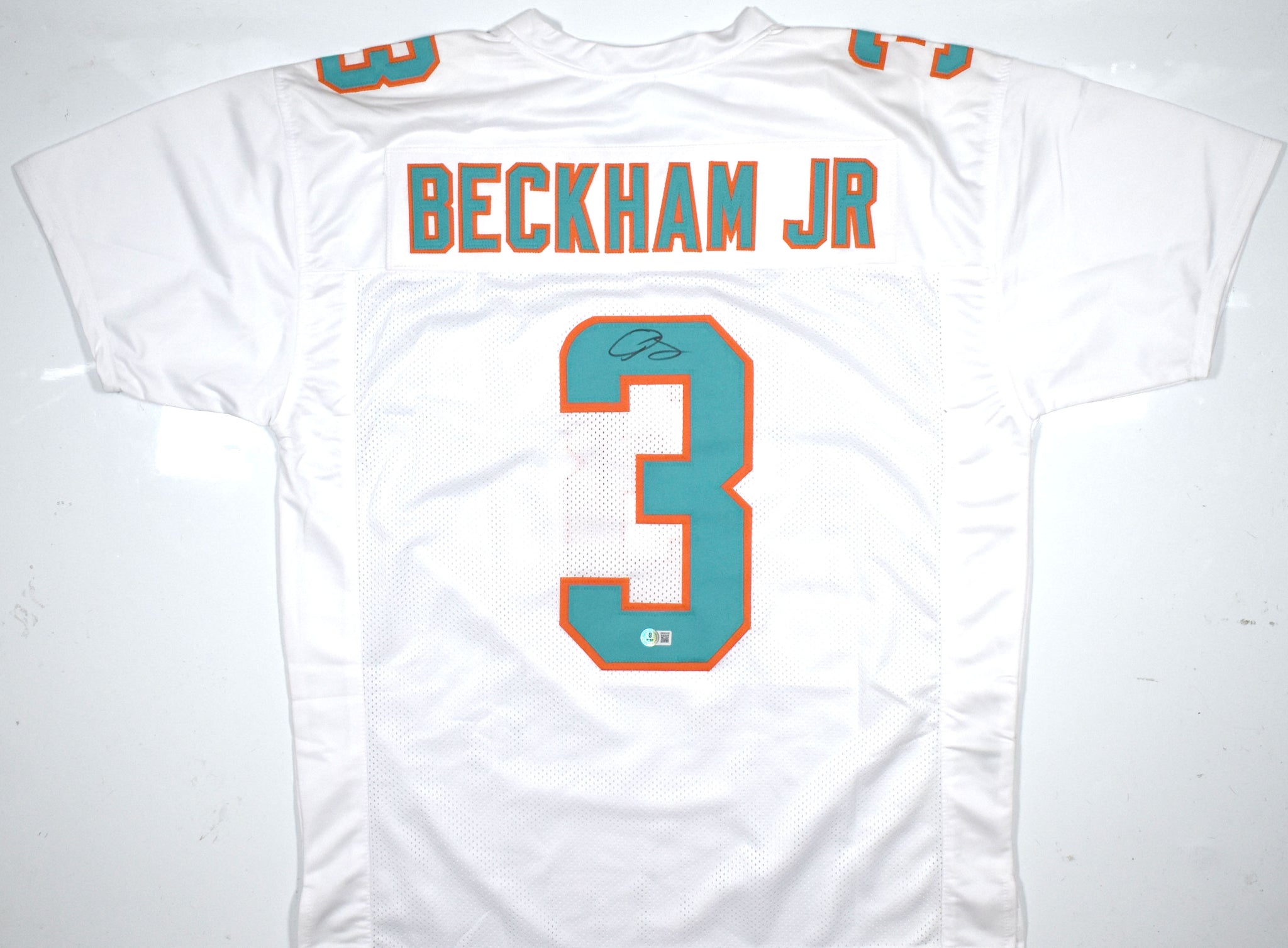 THIS IS NOT AN NFL JERSEY. THIS HAS NO TAGS, NO LOGOS, NO EMBLEMS. This is a hand autograph of Odell Beckham Jr. on a Custom Made (non name brand) Authentic Style Jersey with stitched letters and numbers. This item has a Beckett Witnessed Authentication, which comes with a numbered hologram and a QR code for verification. You can view this item on the Beckett Authentication website and it shows when and where the item was signed. It was signed either at a public autograph appearance or a private signing. This is a stock photo of the item. Although you may not receive this exact item, the item you receive is virtually identical and brand new in great shape. Jersey size is XL.
