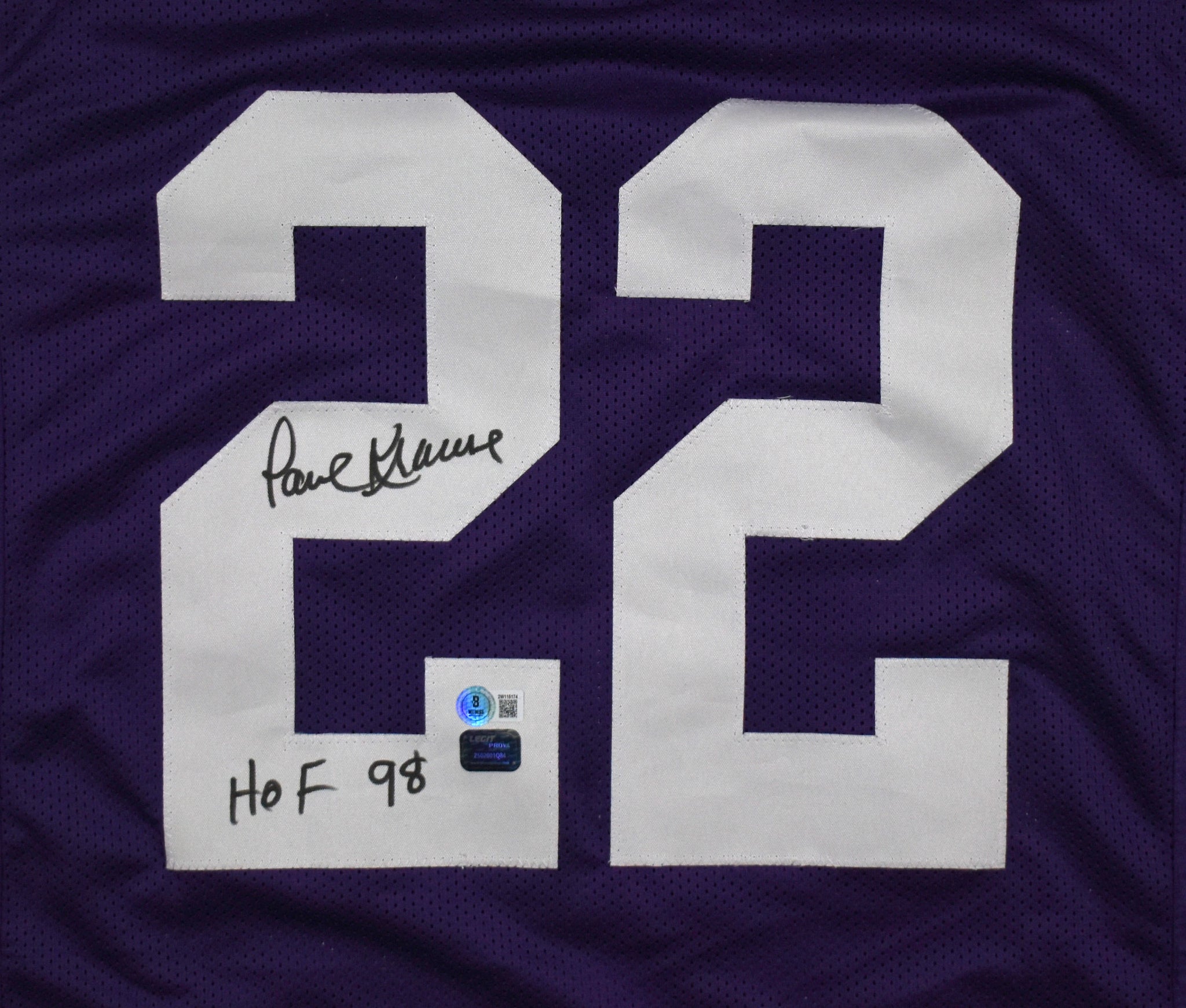 Paul Krause Autographed Purple Pro Style Jersey w/HOF- Beckett W Hologram *Black
