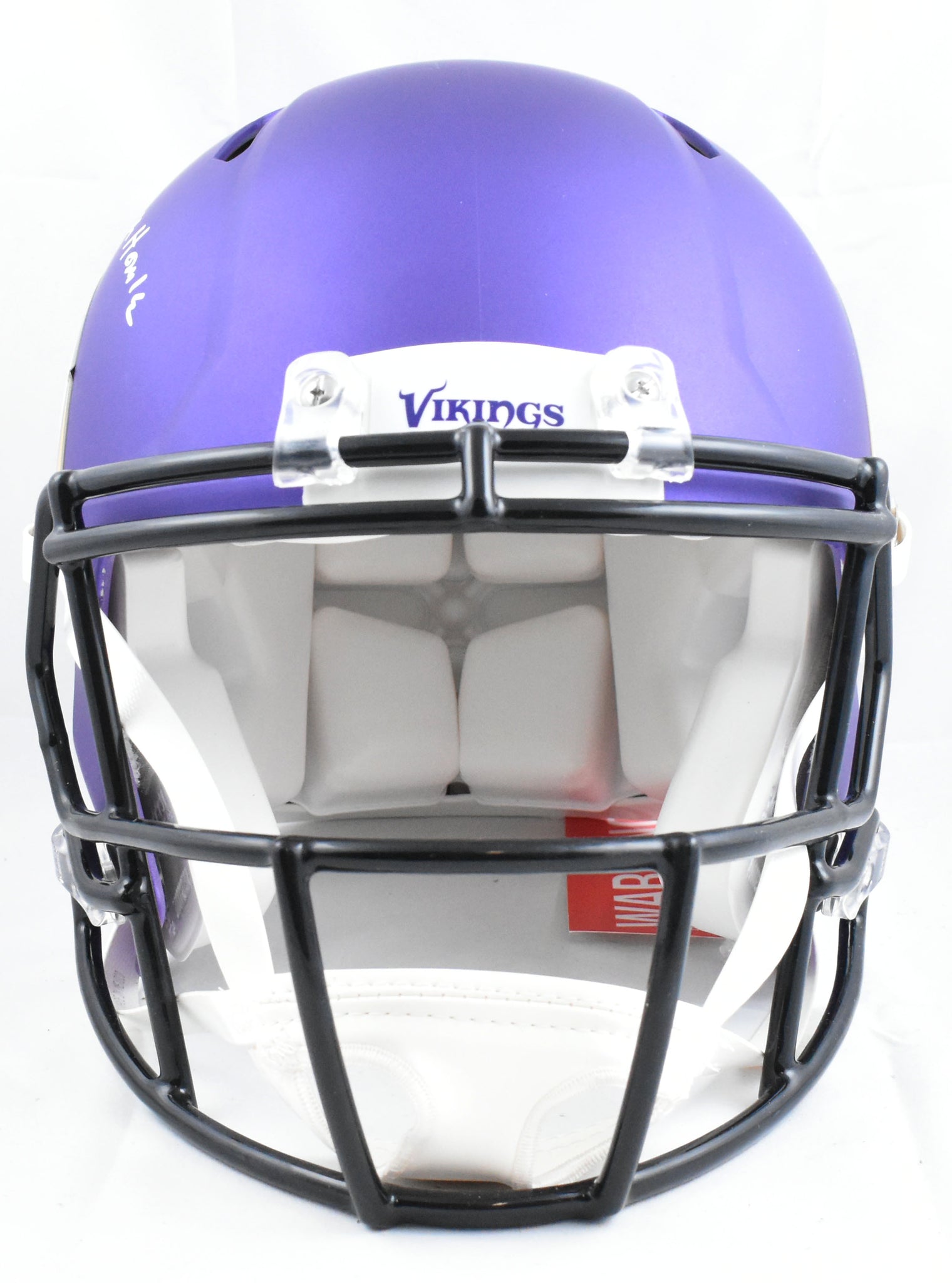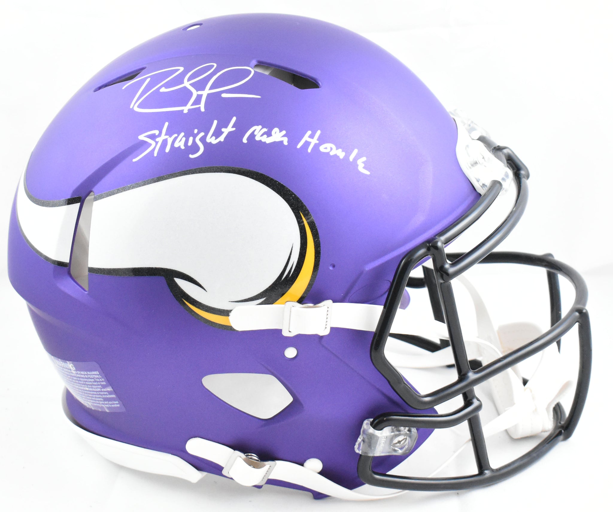 This is a Randy Moss of the Minnesota Vikings Autographed Riddell football full size Speed Authentic helmet. Inscribed Straight Cash Homie. This item has a Beckett Witnessed Authentication, which comes with a numbered hologram and a QR code for verification. You can view this item on the Beckett Authentication website and it shows when and where the item was signed. It was signed either at a public autograph appearance or a private signing. This is a stock photo of the item. Although you may not receive this exact item, the item you receive is virtually identical, brand new, and in great shape. *Autograph location may vary*