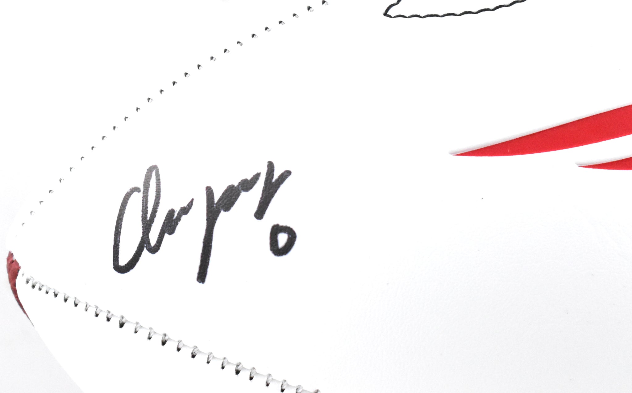This is a hand autographed Football of Christian Gonzalez of the New England Patriots. This is a New England Patriots Franklin Logo Football. This item has a Beckett Witnessed Authentication, which comes with a numbered hologram and a QR code for verification. You can view this item on the Beckett website, it shows when and where the item was signed. It was signed either at a public autograph appearance or a private signing. This is a stock photo of the item. Although you may not receive this exact item, the item you receive is virtually identical and brand new in great shape.