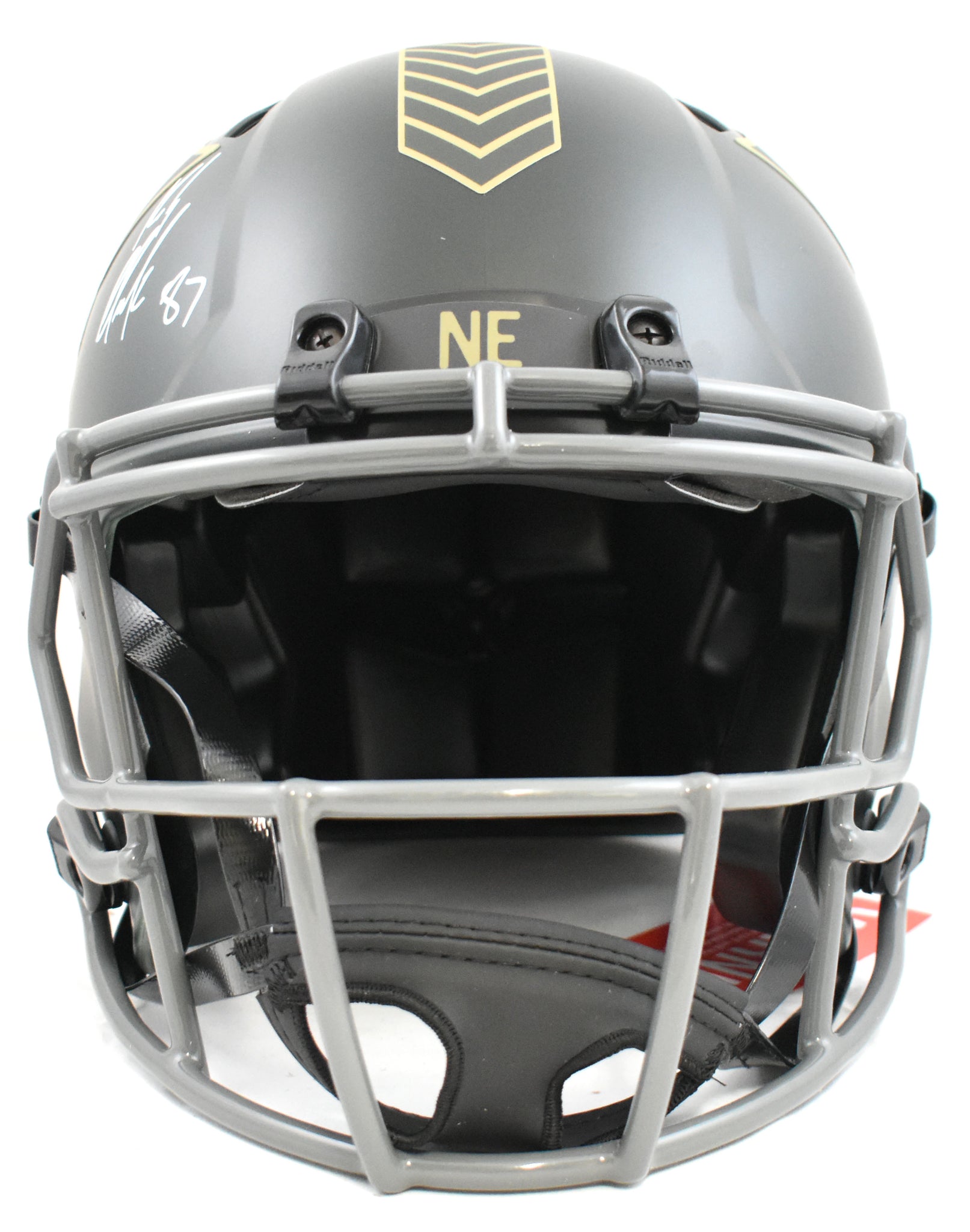 This is a Rob Gronkowski of the New England Patriots autographed Riddell football full size Salute to Service 2025 Speed Authentic helmet. This item has a Beckett Witnessed Authentication, which comes with a numbered hologram and a QR code for verification. You can view this item on the Beckett Authentication website, and it shows when and where the item was signed. It was signed either at a public autograph appearance or a private signing. This is a stock photo of the item. Although you may not receive this exact item, the item you receive is virtually identical, brand new, and in great shape. *Autograph location may vary*