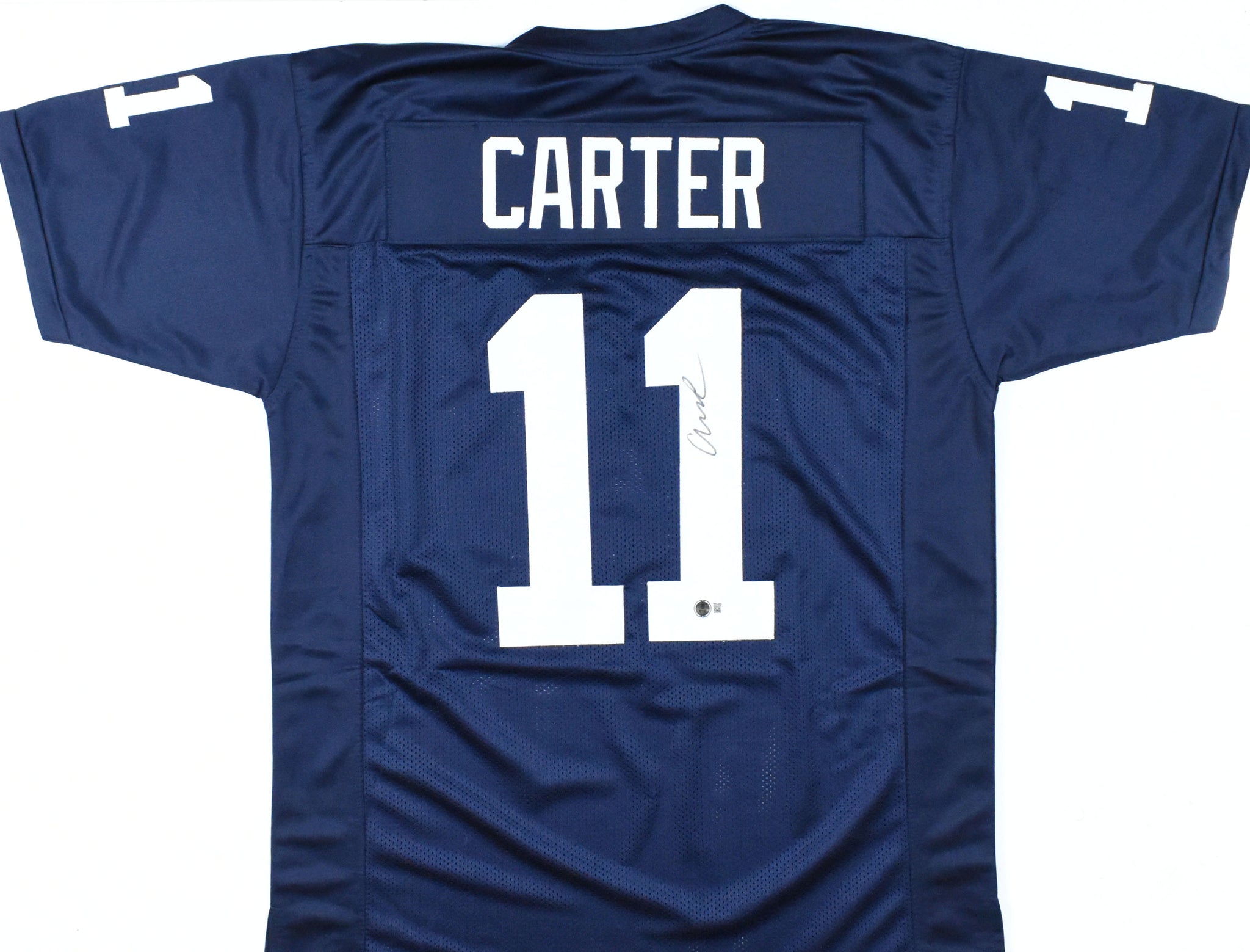 THIS IS NOT AN NCAA JERSEY. THIS HAS NO TAGS, NO LOGOS, NO EMBLEMS. This is a hand autograph of Abdul Carter of Penn State on a Custom Made (non-name brand) Authentic Style Jersey with stitched letters and numbers. This item has a Beckett Witnessed Authentication, which comes with a Beckett numbered sticker hologram and a QR Code for verification. You can view this item on the Beckett Authentication website. It was signed either at a public autograph appearance or a private signing. This is a stock photo of the item. Although you may not receive this exact item, the item you receive is virtually identical and brand new in great shape. Jersey size is XL.