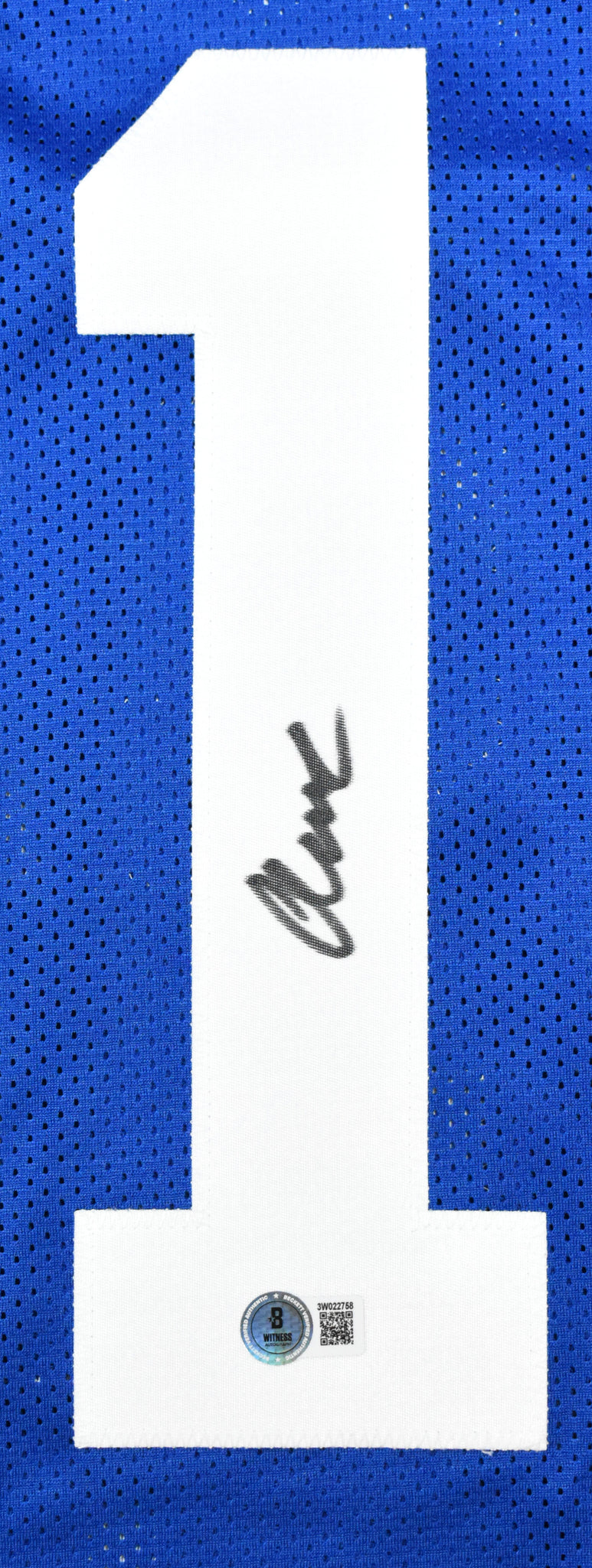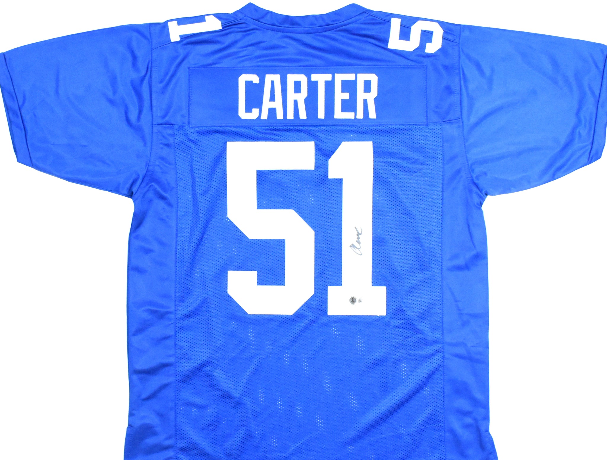 THIS IS NOT AN NFL JERSEY. THIS HAS NO TAGS, NO LOGOS, NO EMBLEMS. This is a hand autograph of Abdul Carter of the New York Giants on a Custom made (non-name brand) Authentic Style Jersey with stitched letters and numbers. This item has a Beckett Witnessed Authentication, which comes with a Beckett numbered sticker hologram and a QR Code for verification. You can view this item on the Beckett Authentication website. It was signed either at a public autograph appearance or a private signing. This is a stock photo of the item. Although you may not receive this exact item, the item you receive is virtually identical and brand new in great shape. Jersey size is XL.