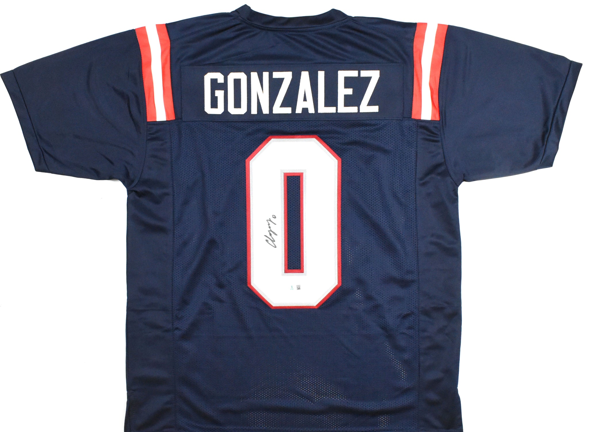 THIS IS NOT AN NFL JERSEY. THIS HAS NO TAGS, NO LOGOS, NO EMBLEMS. This is a hand autograph of Christian Gonzalez of the New England Patriots on a Custom made (non-name brand) Authentic Style Jersey with stitched letters and numbers. This item has a Beckett Witnessed Authentication, which comes with a Beckett numbered sticker hologram and a QR Code for verification. You can view this item on the Beckett Authentication website. It was signed either at a public autograph appearance or a private signing. This is a stock photo of the item. Although you may not receive this exact item, the item you receive is virtually identical and brand new in great shape. Jersey size is XL.