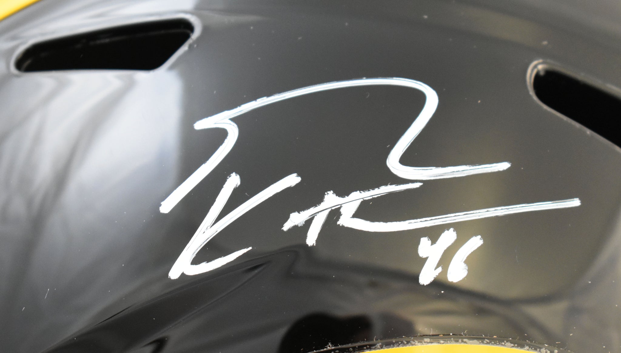 This is a George Kittle of the Iowa Hawkeyes autographed Riddell football full size Speed Replica helmet. This item has a Beckett Witnessed Authentication, which comes with a numbered hologram and a QR code for verification. You can view this item on the Beckett Authentication website, and it shows when and where the item was signed. It was signed either at a public autograph appearance or a private signing. This is a stock photo of the item. Although you may not receive this exact item, the item you receive is virtually identical, brand new, and in great shape. *Autograph location may vary*