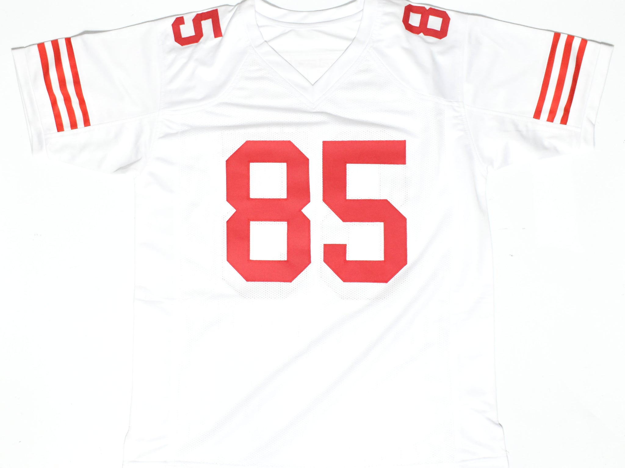 THIS IS NOT AN NFL JERSEY. THIS HAS NO TAGS, NO LOGOS, NO EMBLEMS. This is a hand autograph of George Kittle of the San Francisco 49ers on a Custom made (non-name brand) Authentic Style Jersey with stitched letters and numbers. This item has a Beckett Witnessed Authentication, which comes with a Beckett numbered sticker hologram and a QR Code for verification. You can view this item on the Beckett Authentication website. It was signed either at a public autograph appearance or a private signing. This is a stock photo of the item. Although you may not receive this exact item, the item you receive is virtually identical and brand new in great shape. Jersey size is XL.