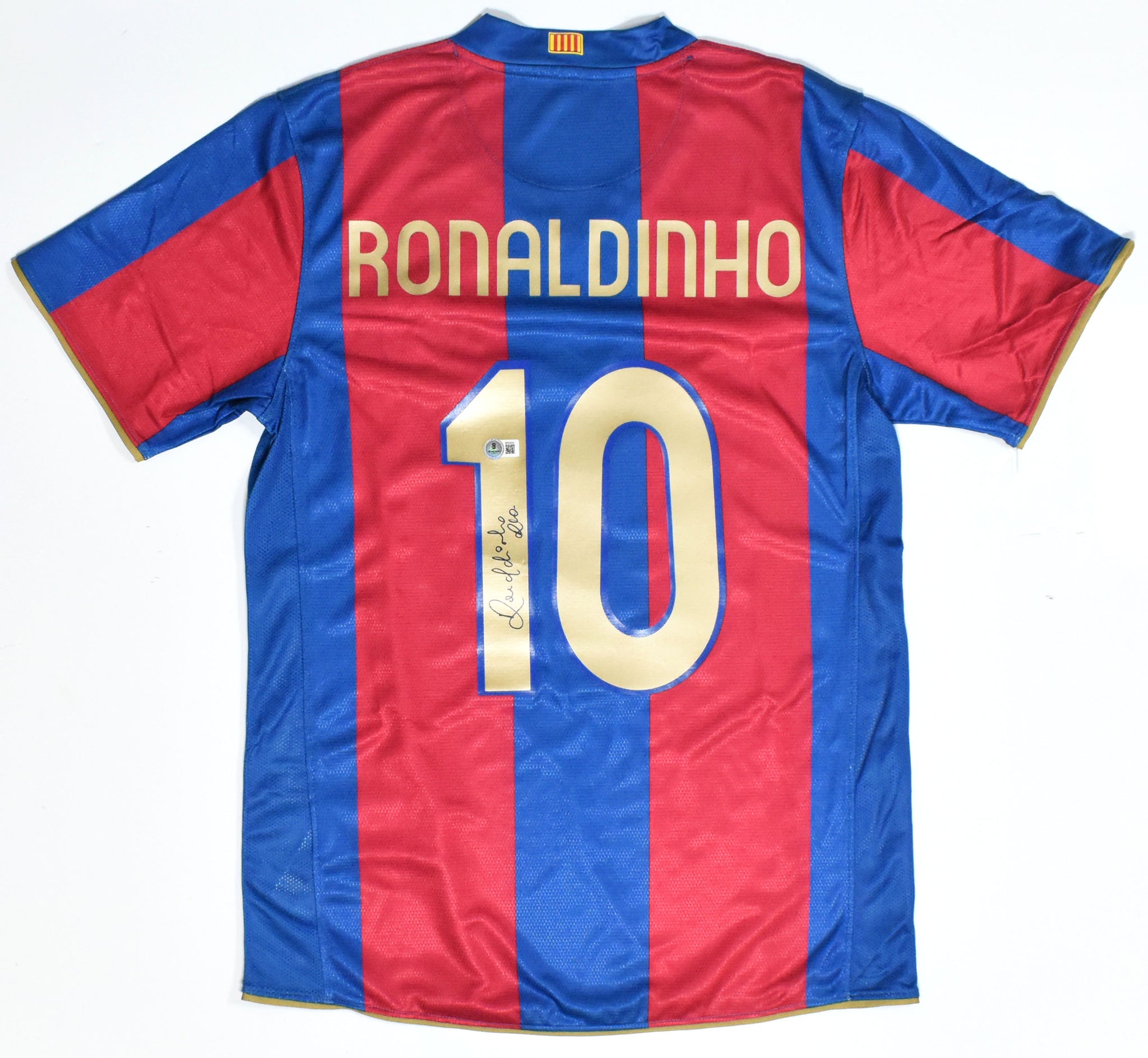Ronaldinho Autographed Barcelona FC Home Soccer Jersey #10 - Beckett Holo *M