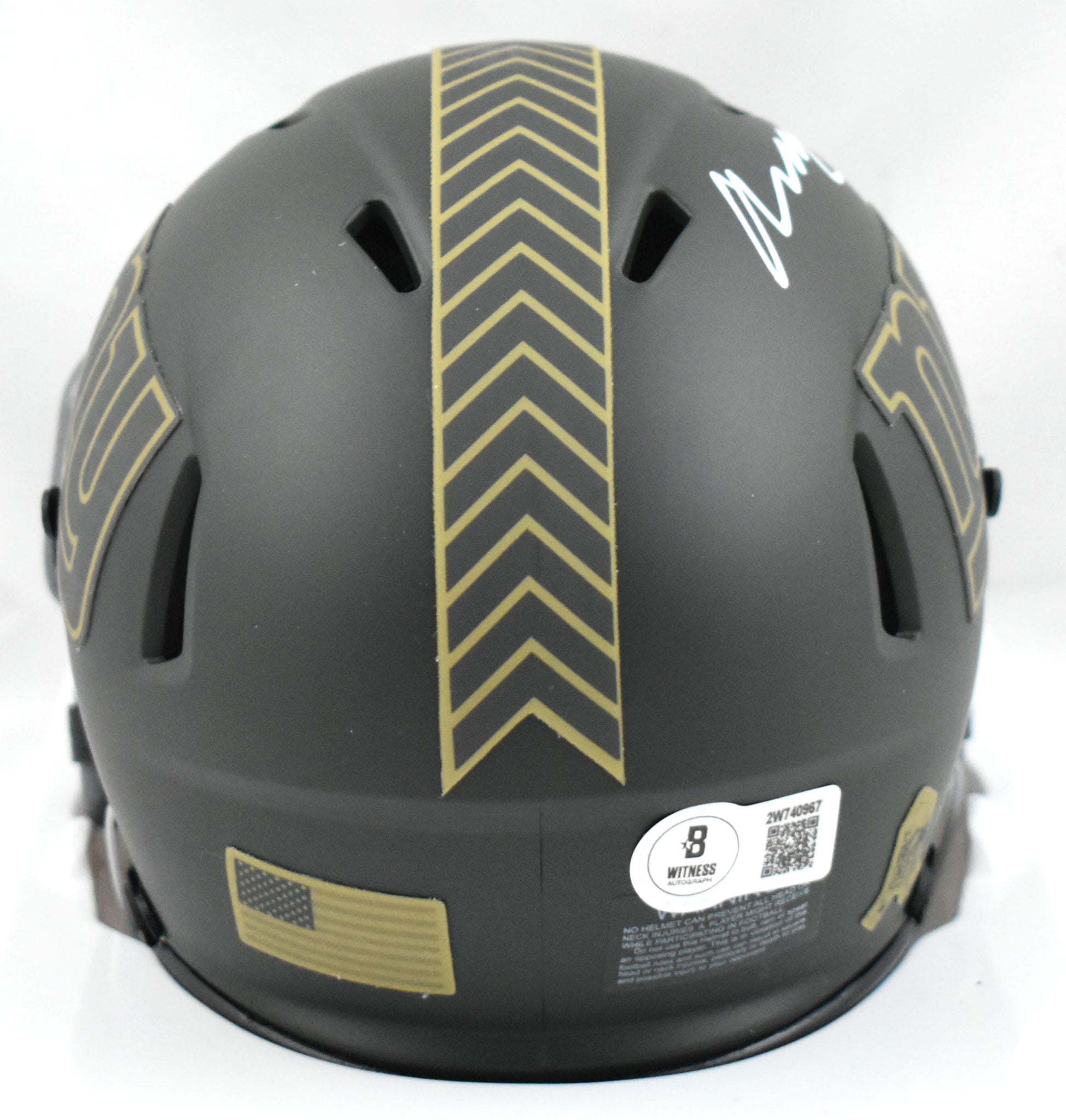 This is a hand autograph of Abdul Carter of the New York Giants on a Riddell Football Salute to Service 2025 Speed Mini Helmet. This item has a Beckett Witnessed Authentication, which comes with a numbered hologram and a QR code for verification. You can view this item on the Beckett Authentication website and it shows when and where the item was signed. It was signed either at a public autograph appearance or a private signing. This is a stock photo of the item. Although you may not receive this exact item, the item you receive is virtually identical and brand new in great shape.