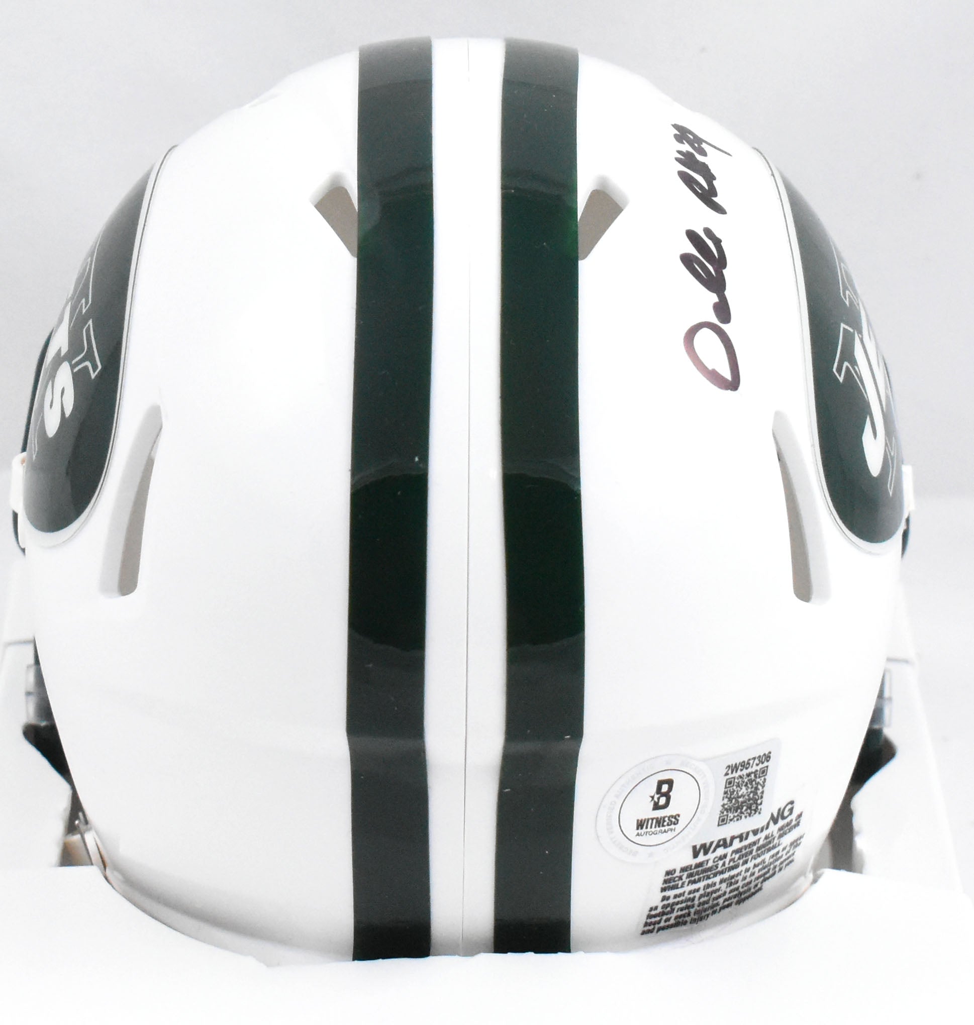 This is a hand autograph of Darrell Revis of the New York Jets on a Riddell Football 98-18 Speed Mini Helmet. This item has a Beckett Witnessed Authentication, which comes with a numbered hologram and a QR code for verification. You can view this item on the Beckett Authentication website and it shows when and where the item was signed. It was signed either at a public autograph appearance or a private signing. This is a stock photo of the item. Although you may not receive this exact item, the item you receive is virtually identical and brand new in great shape.