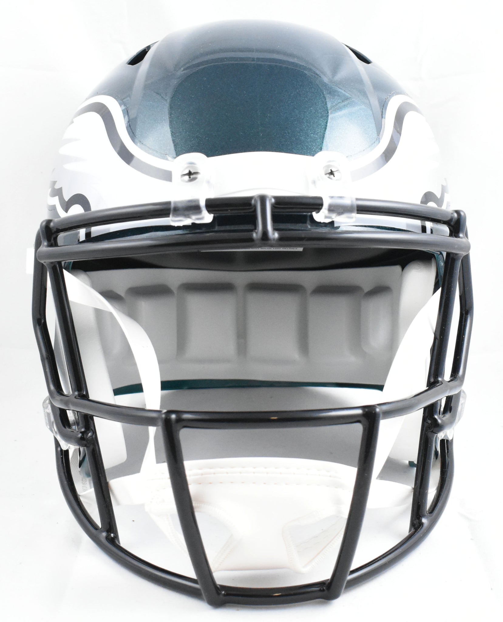 This is a Jalen Carter of the Philadelphia Eagles Autographed Riddell football full size Speed Replica helmet. This item has a Beckett Witnessed Authentication, which comes with a numbered hologram and a QR code for verification. You can view this item on the Beckett Authentication website and it shows when and where the item was signed. It was signed either at a public autograph appearance or a private signing. This is a stock photo of the item. Although you may not receive this exact item, the item you receive is virtually identical, brand new, and in great shape. *Autograph location may vary*