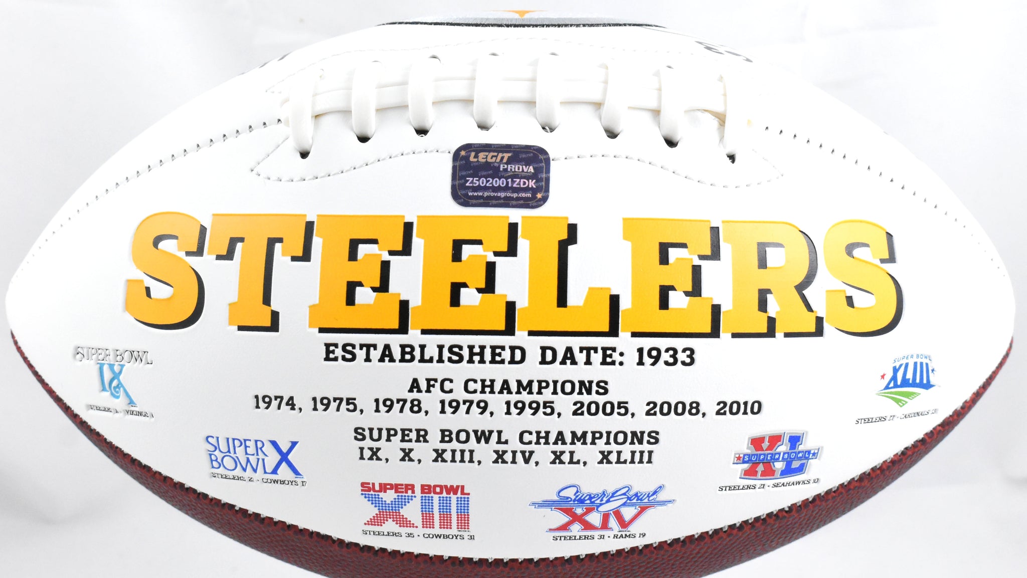 This is a hand autographed Football of Dermontti Dawson of the Pittsburgh Steelers. This is a Pittsburgh Steelers Franklin Logo Football. Inscribed HOF. This item has a Prova Authentication, which comes with a numbered hologram. You can view this item on the Prova website. It was signed either at a public autograph appearance or a private signing. This is a stock photo of the item. Although you may not receive this exact item, the item you receive is virtually identical and brand new in great shape.
